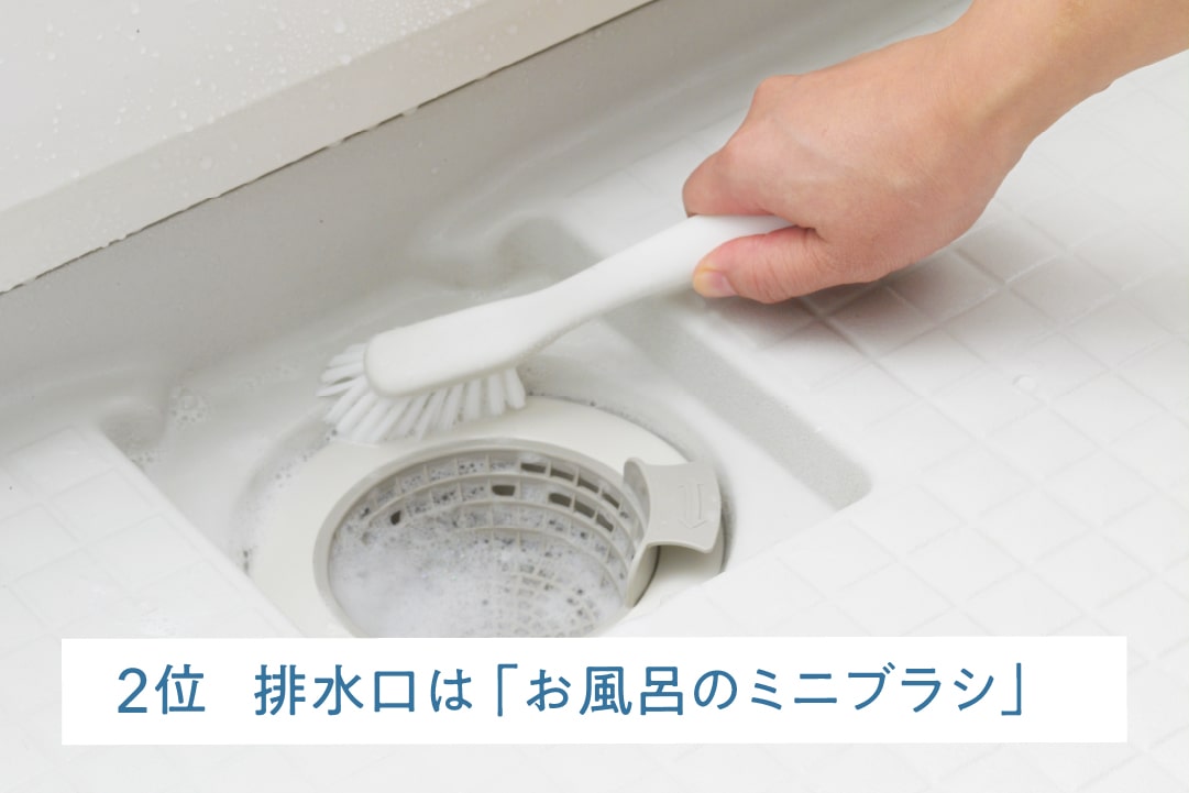 「排水口に加え、ドアサッシにも使っています。丸みのある柄が握りやすく、吊るしていてもきれいな佇まいが魅力。入浴中に見つけた汚れを、さっと掃除してから出るのが習慣になりました」(事務・M)