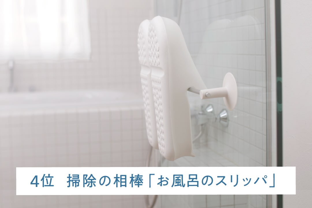 「スリッパタイプで、靴下のままさっと履けて、掃除のハードルが下がりました。お風呂掃除のアイテムは、使用時間より収納時間の方が長い。バーにかけたり吊るしたり立てかけたり。収納しやすさも愛用の理由です」(グラフィックデザイナー・F)