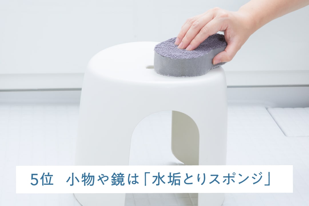 「椅子や湯おけなどの小物類はこれ一つできれいに。濡らすとスポンジが柔らかくなるため、ゴシゴシ洗えます。ずぼらな我が家はすぐ水垢がつくのですが、洗剤不要でさっときれいにできるのがうれしい」(企画販売・S)