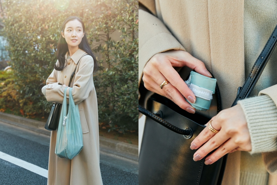 「もともとShupattoバッグはいくつも使っていました。シンプルなデザイン、ぱっと開いてぱっとたためるのがお気に入りで」そう言ってかばんから取り出したShupattoミニマルバッグは、赤坂さんの佇まいにしっくりなじんでいます。