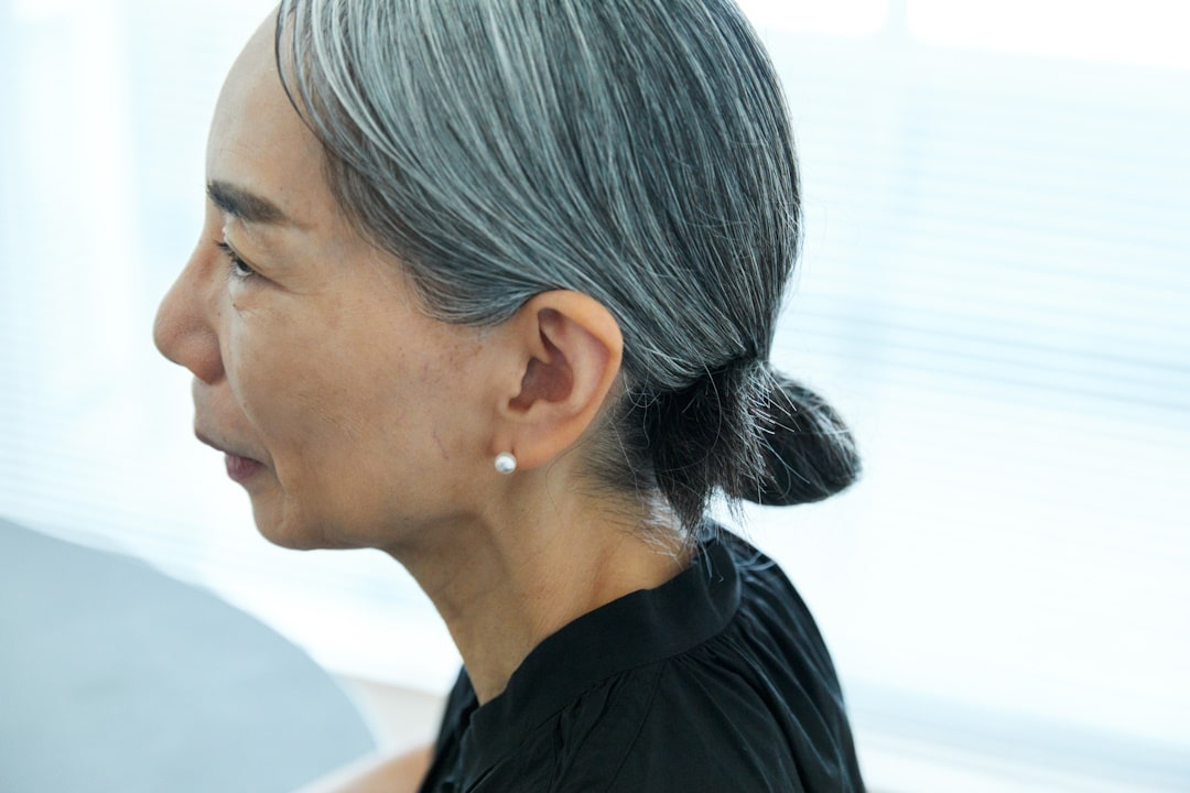 50代半ばを過ぎた頃、思い切ってヘアカラーをやめて、グレイヘアーへ移行したことも、そう腑に落ちる大きなきっかけだったと話します。