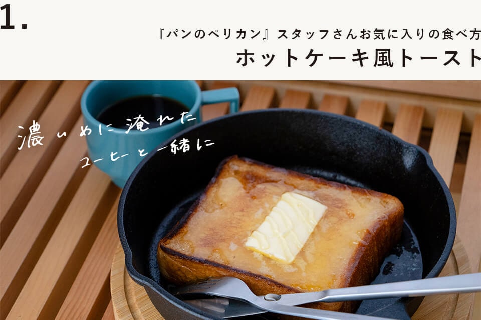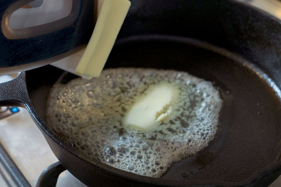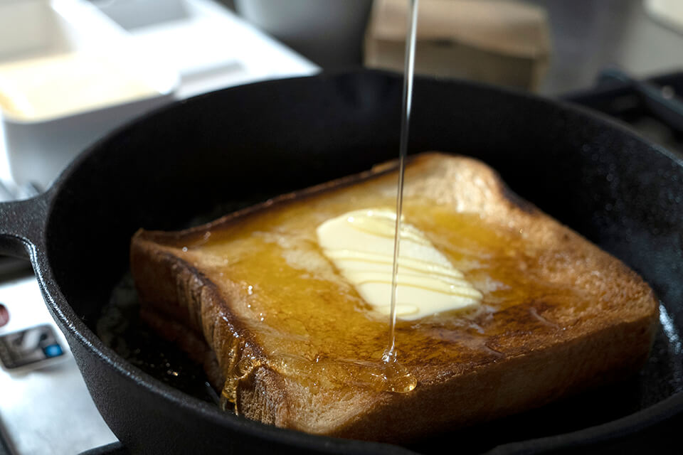 1.スキレット又はフライパンを中火で温め、バターを溶かし、食パンを焼く。