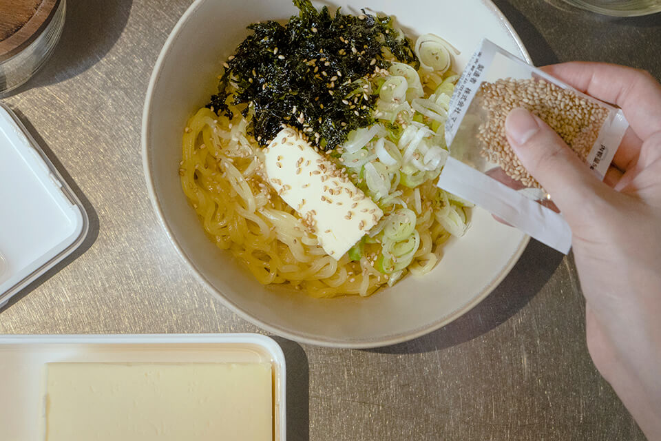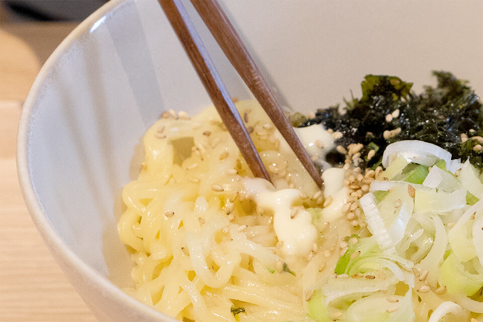 3.どんぶりに麺を移し、お好みでねぎ、白ごま、