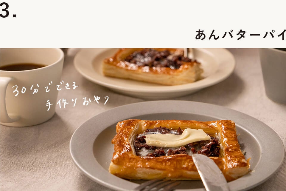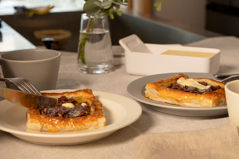 「バターケース」があれば、気軽にバターが使える。溶けて、染みて、バターの美味しさを存分に愉しめて、手軽に作れるレシピをご紹介します。第2回は「あんバターパイ」と「バター焼きおにぎり」。バターの芳醇な風味をお楽しみください。
