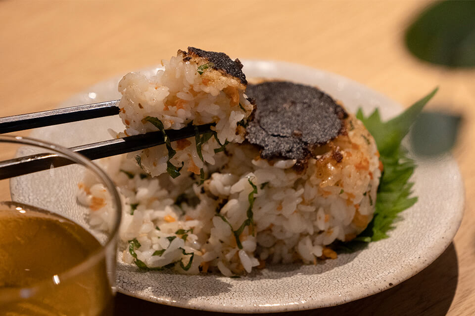 2.おにぎりの片面にみそを塗る。