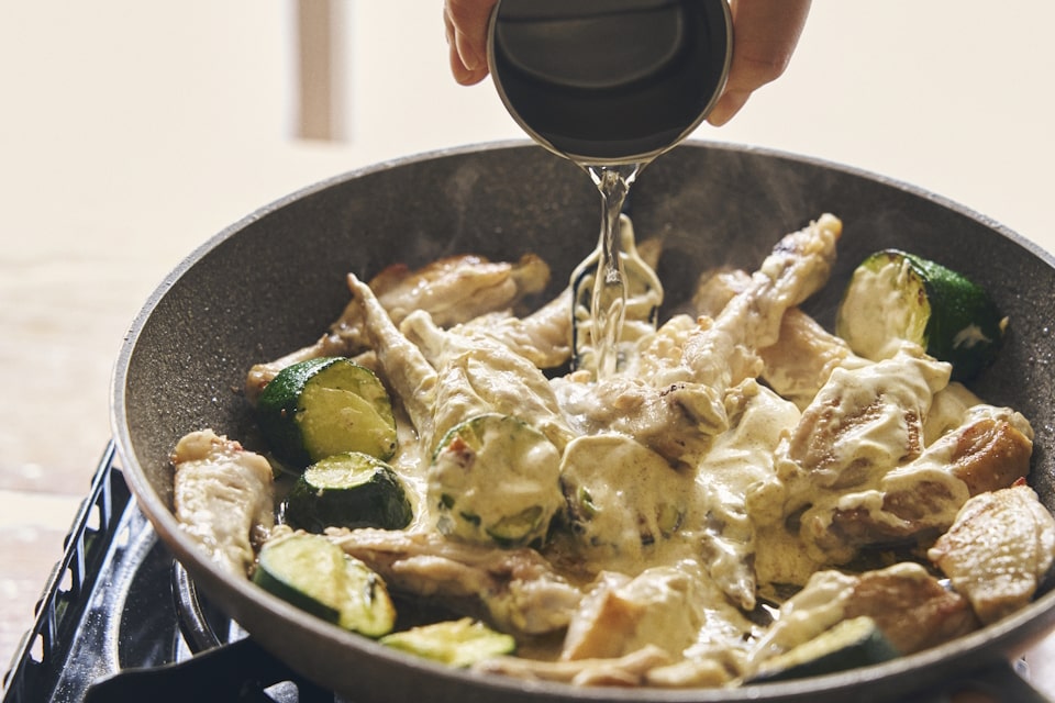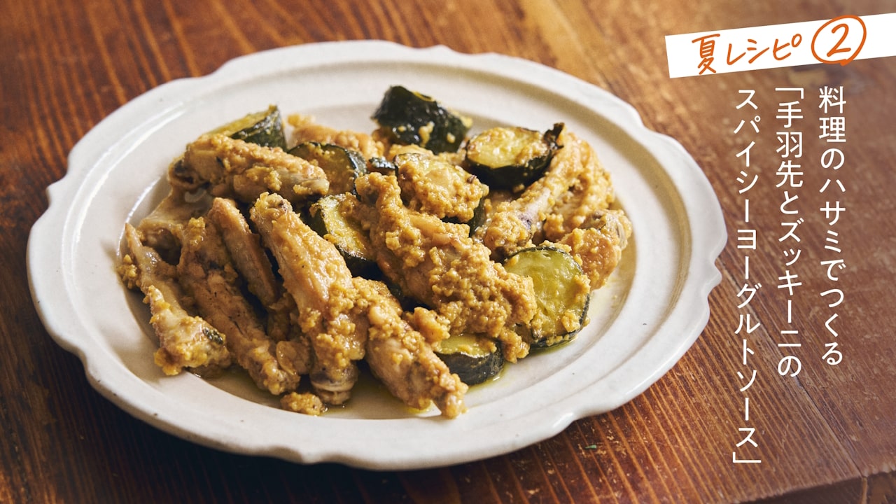 「毎日のあたらしい家庭料理」を提案する料理家の今井真実さんに教わる、夏のレシピ。今回は、お肉もサクッと切れる「料理のハサミ」でつくる「手羽先とズッキーニのスパイシーヨーグルトソース」。ほんのりスパイシーでまろやか。大人も子どもも箸が止まらないひと皿です。