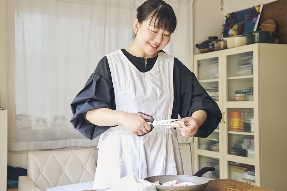 「キャンプが好きで家族でよく行くんですが、一度包丁を忘れて、ハサミで調理をしたことがあったんです。意外とハサミ1本でも調理はできるし、洗いものが少なくていいなって。料理のハサミは、お肉も切れるし、パーツを分解してしっかり洗えるから衛生的にも安心。