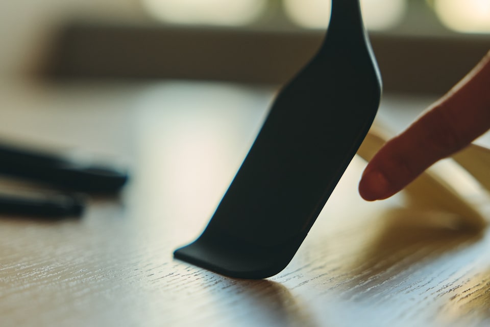 よくあるのは先に向かって末広がりな形ですが、フライパンに並ぶ隣の食材に当たらないようコンパクトな幅に見直し、かつ洗いやすいようスリット(穴)をなくすなどシンプルに。既存の形から削ぎ落とした結果です。