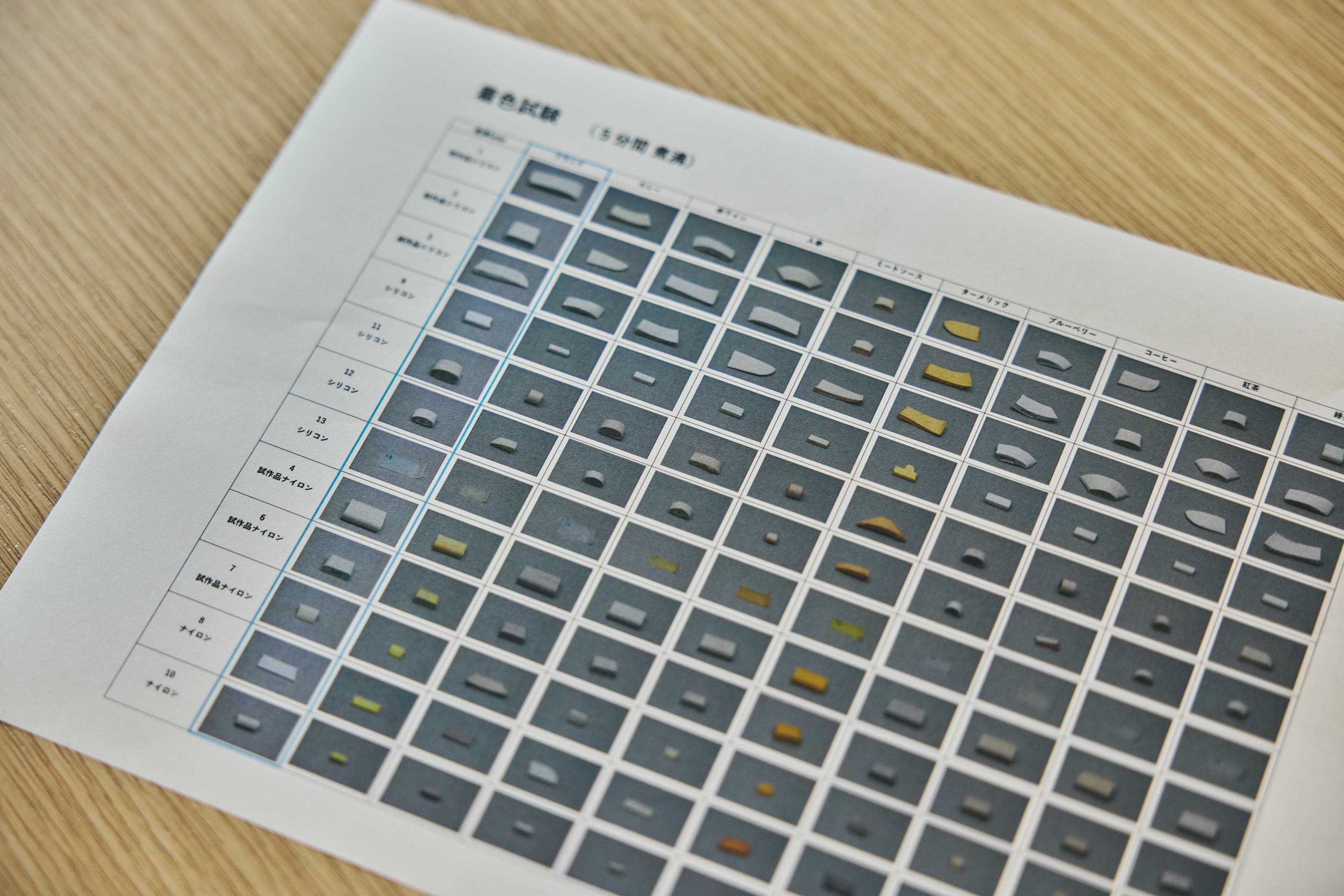 社員モニターやアンケートと共に実験を重ねて、キッチンに馴染みやすいダークグレーと、明るい色も楽しみつつ、着色汚れが目立ちにくいグレーの2色展開にすることを決めました。