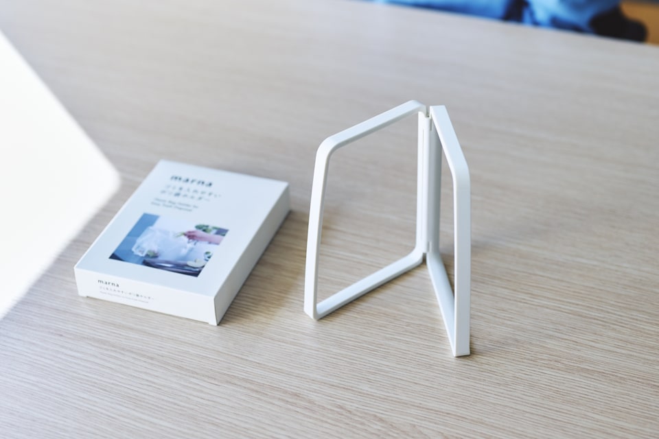 フレームがV字に開くことで、袋口が手前に大きく開いてゴミが捨てやすく、閉じると薄くコンパクトになる。形状が決まって、そこからまた2年、完成までの道のりは長かったです。