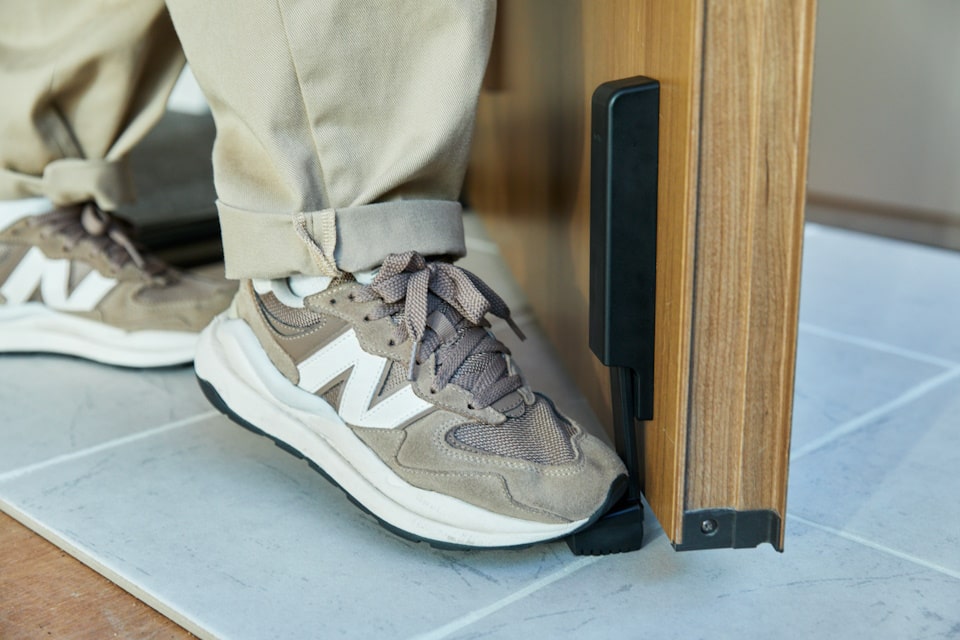 一瞬のことだけど、誰かにちょっとドアを押さえていてほしいという感覚なんですね。その一瞬の不便さに寄り添いたいと、片足でペダルを踏み込むだけで固定され、ドアを軽く押すだけで解除されるドアストッパーを目指しました。