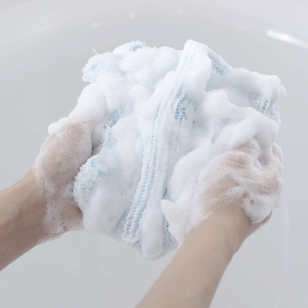 実験に実験を重ねて、とことん「泡立ち」を追求したボディタオルです。 気泡の大きさまでこだわり、ふわっとした適度な空気量を保ちます。 泡工場から生み出される極上泡で、至福のバスタイムをお楽しみください。