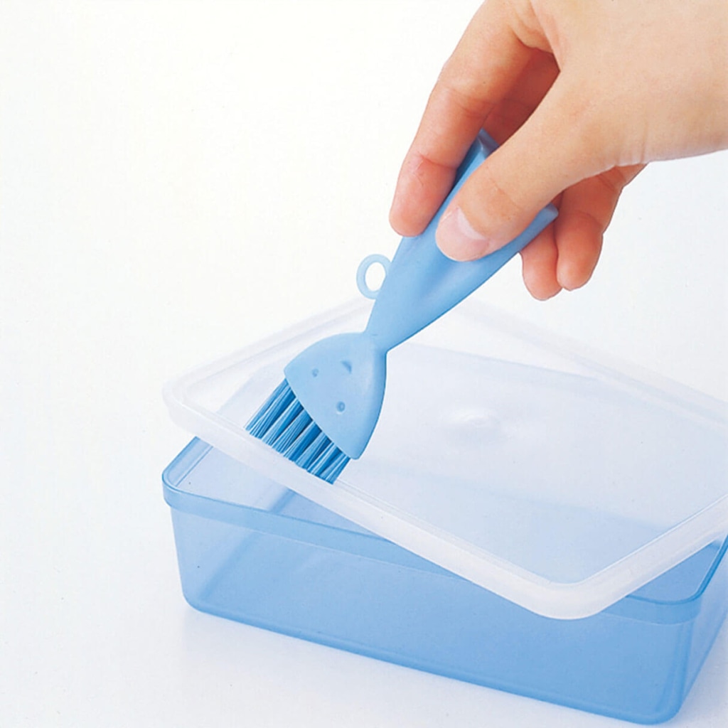 お弁当箱や密閉容器のフタの溝やすみっこなど、スポンジでは届きにくい汚れをかき出します。斜めにカットしたブラシがポイント。蛇口まわりなど細かい箇所のお掃除にも使えます。