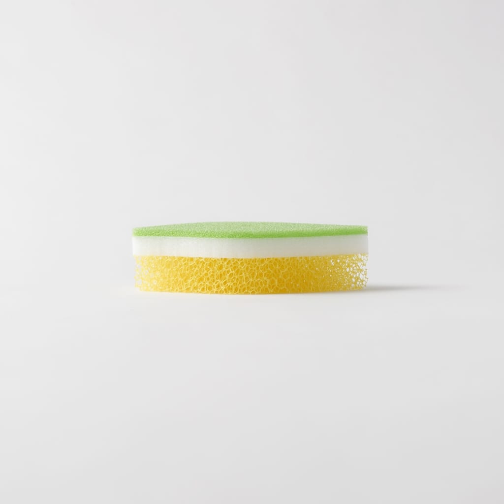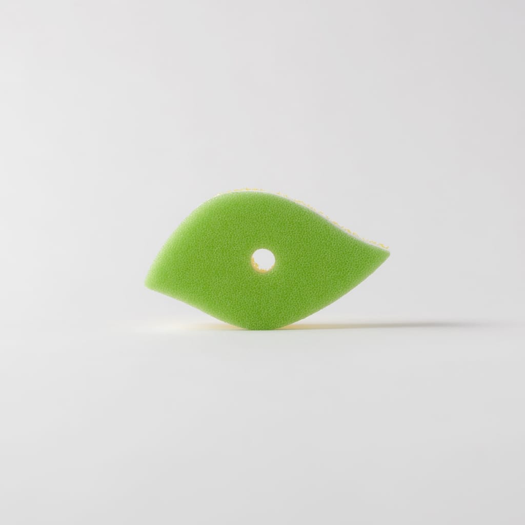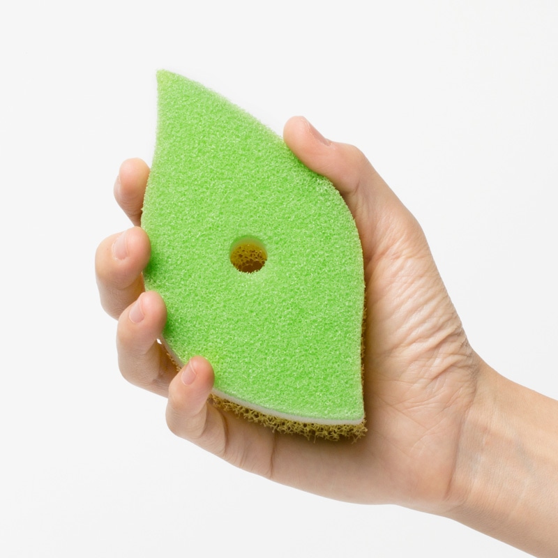 泡立ち・水切れが良く、葉っぱの形が手になじむ耐久性のよい3層構造のキッチンスポンジ。