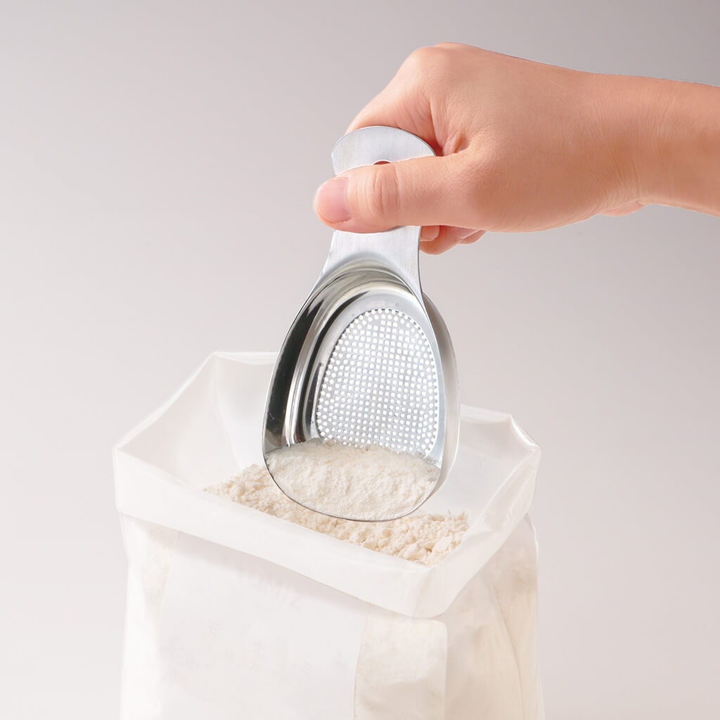 長く使える、高級感のあるステンレス製の粉ふりスプーンです。袋からサッとすくえてきれいにまぶせるからお料理の下ごしらえが楽にできます。お菓子作りの時の粉砂糖やココアパウダーの粉ふりにもとても便利です。