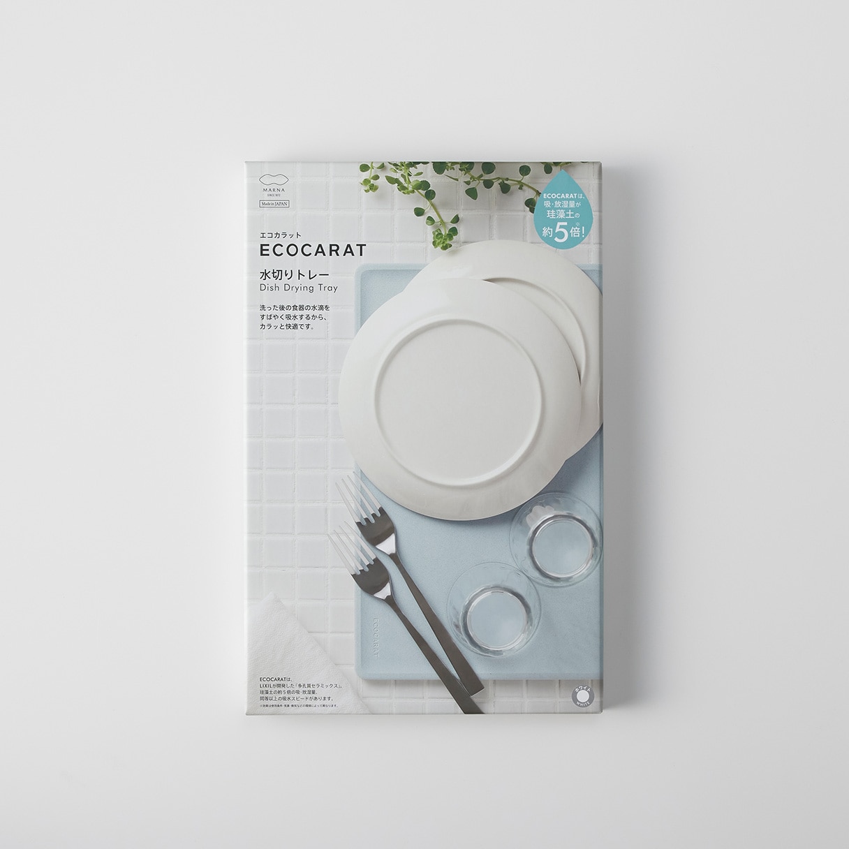 洗った後の食器の水滴をすばやく吸水するので、カラッと快適です。薄い板状なので、使用後は立てかけて収納でき、邪魔になりません。ECOCARATは、LIXILが開発した「多孔質セラミックス」。珪藻土の約5倍の吸・放湿量、同等以上の吸水スピードがあります。