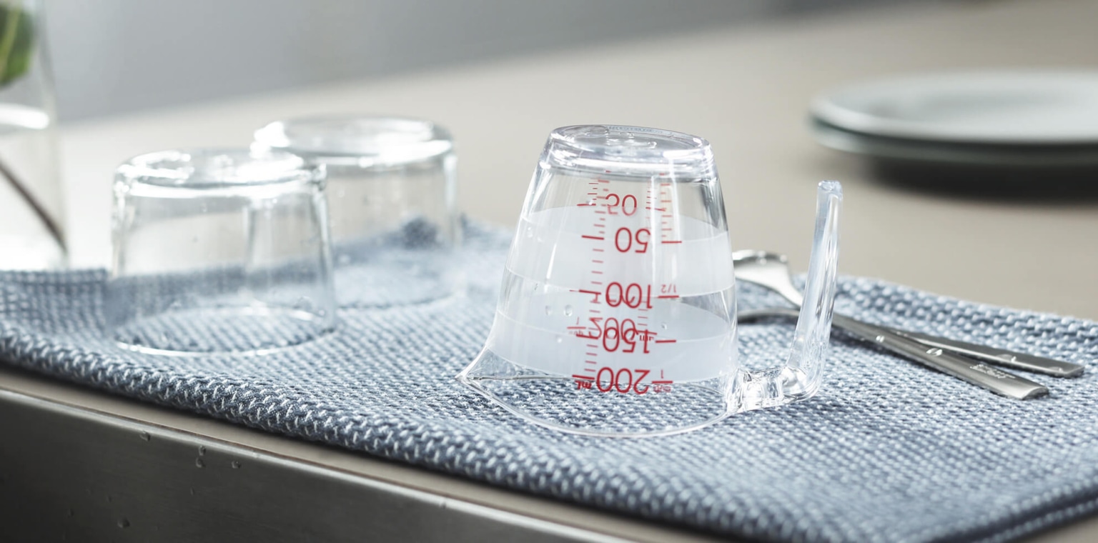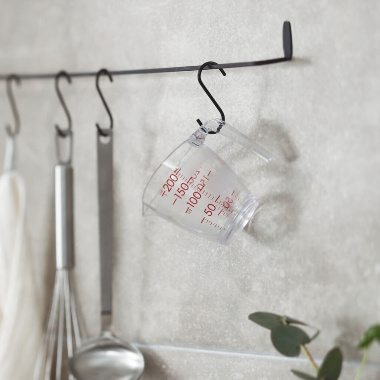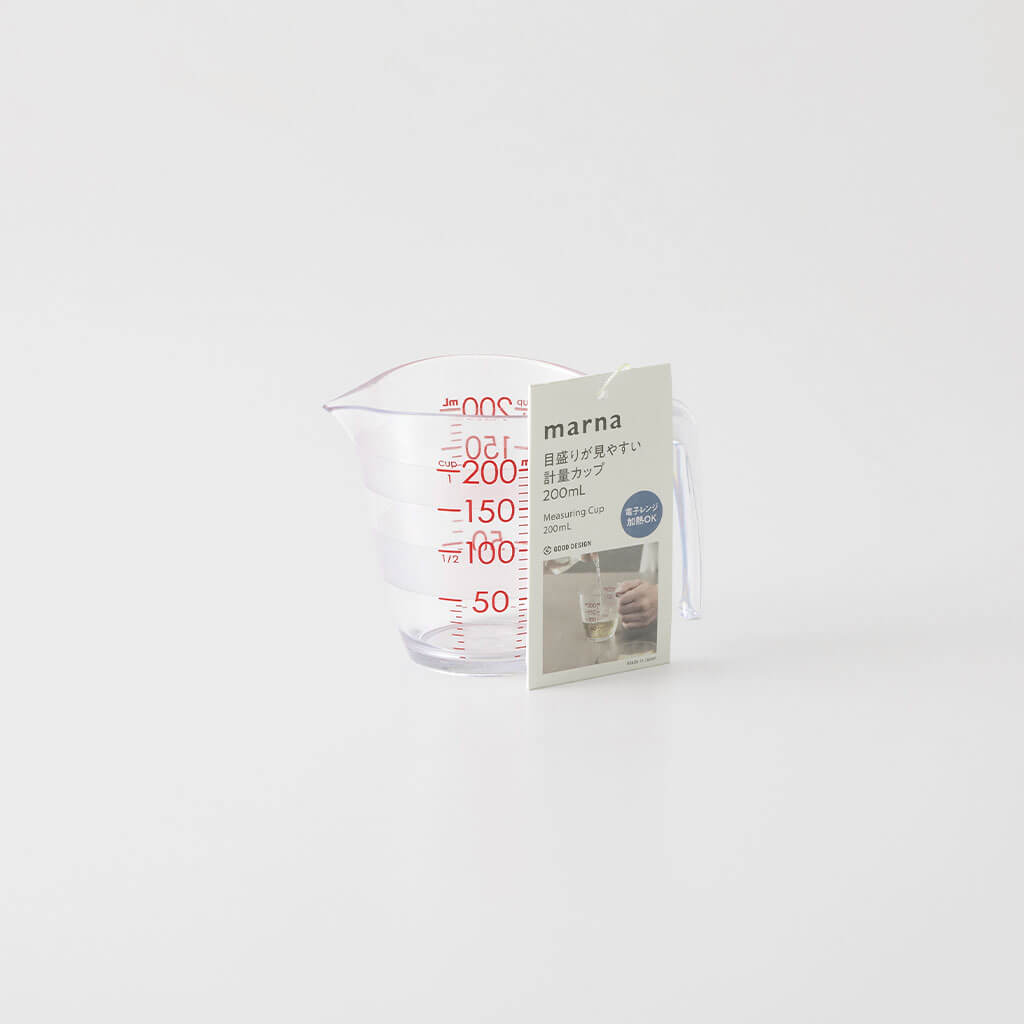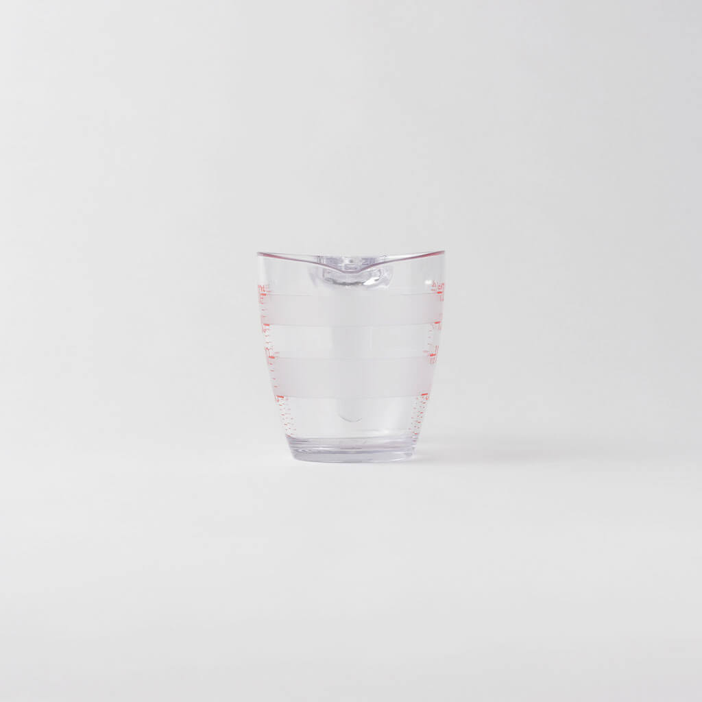 大きな数字と全周にわたるボーダーの計量線で、どこからでも目盛りが見えて量りやすい計量カップです。注ぎ口は先端が薄く、注ぎやすく液だれしにくい形状。内側に角がないので洗いやすく、逆さにしたときに注ぎ口が台に触れないので、乾きやすく衛生的です。