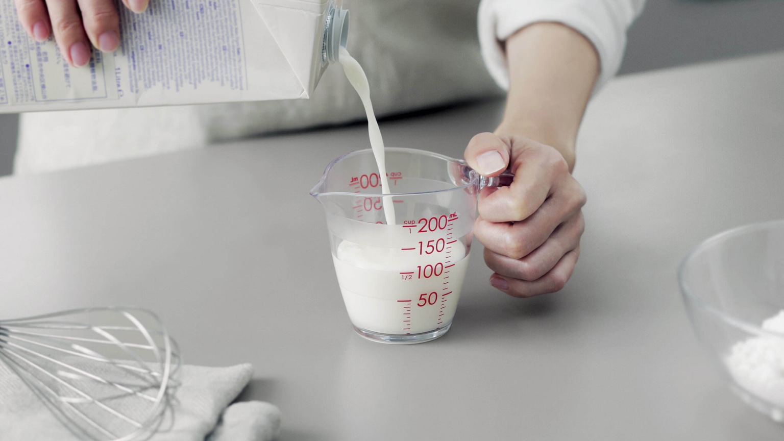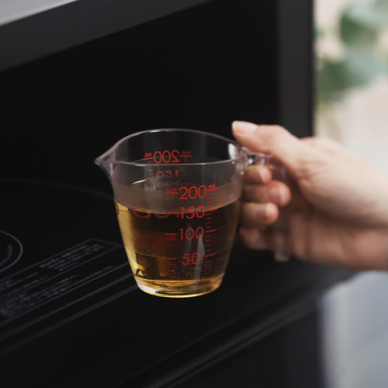 大きな数字と全周にわたるボーダーの計量線で、どの角度からでも目盛りが見やすい設計です。