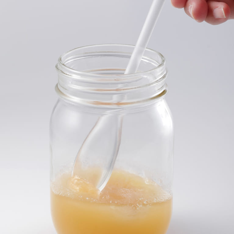 クルッと回して、はちみつをすくいやすく、そのまま使えるディッパーです。細い先端が瓶のスミに届きやすく、結晶化したはちみつも砕けます。「山田養蜂場」と共同企画しました。