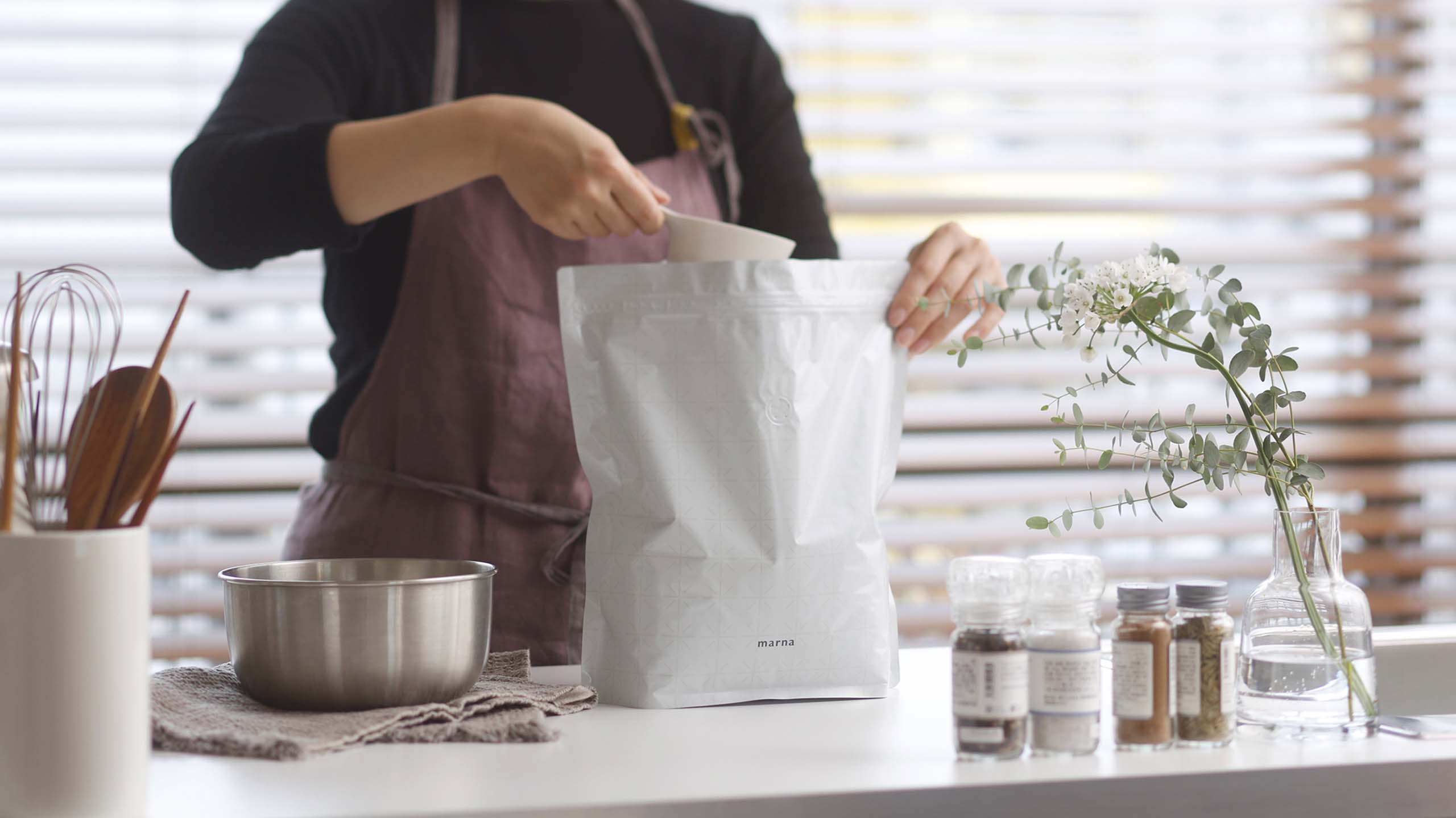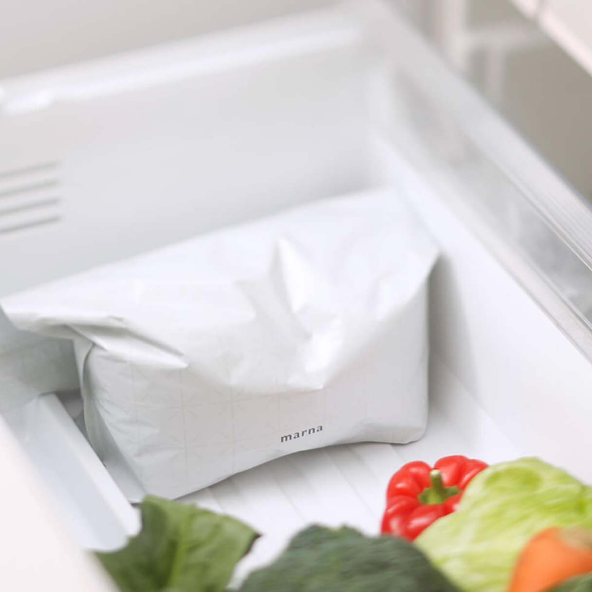お米の量に合わせて省スペースで収納できる袋形状。マチ付きなので、冷蔵庫の中で自立させて保存できます。