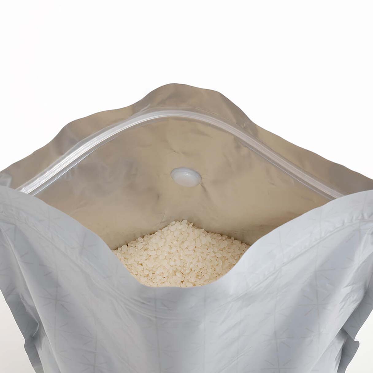 ダブルジッパーで密封。光・空気・臭いを通さずお米の鮮度を保ち、おいしく保存できます。