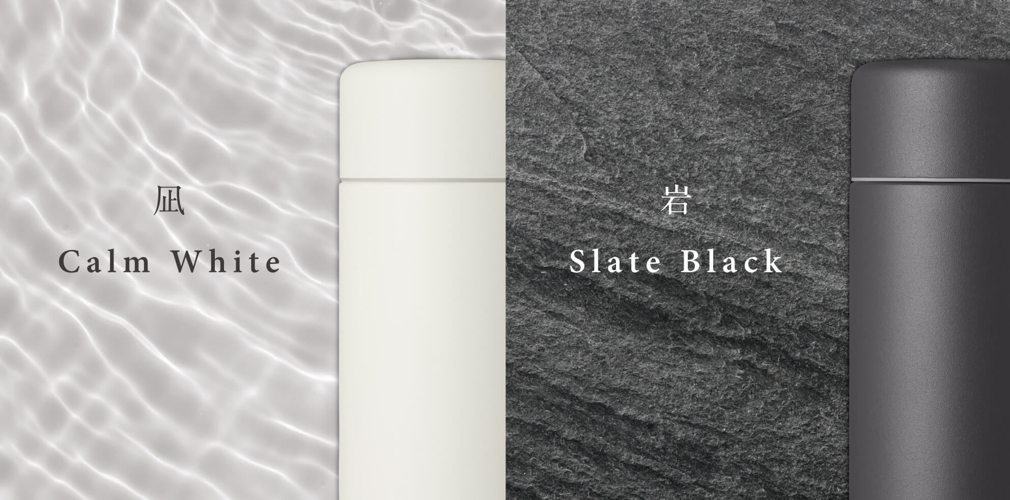先端にいくにつれ薄くなる飲み口と艶やかな表面により、口当たりの良さを実現。パウダーコーティングを施したボディはまるで陶器のような質感です。