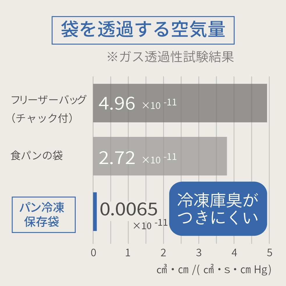 光・空気・臭いを遮断するアルミを挟んだ三層構造にすることで、おいしさを閉じ込めます。袋を透過する空気量が少ないので、冷凍庫臭がつきにくくなっています。