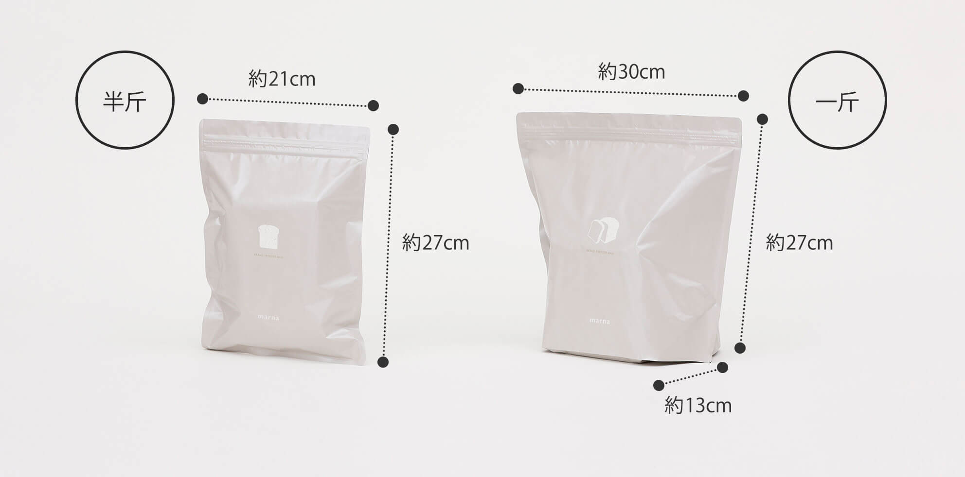 2枚入りです。左「パン冷凍保存袋 半斤」、右「パン冷凍保存袋 一斤」