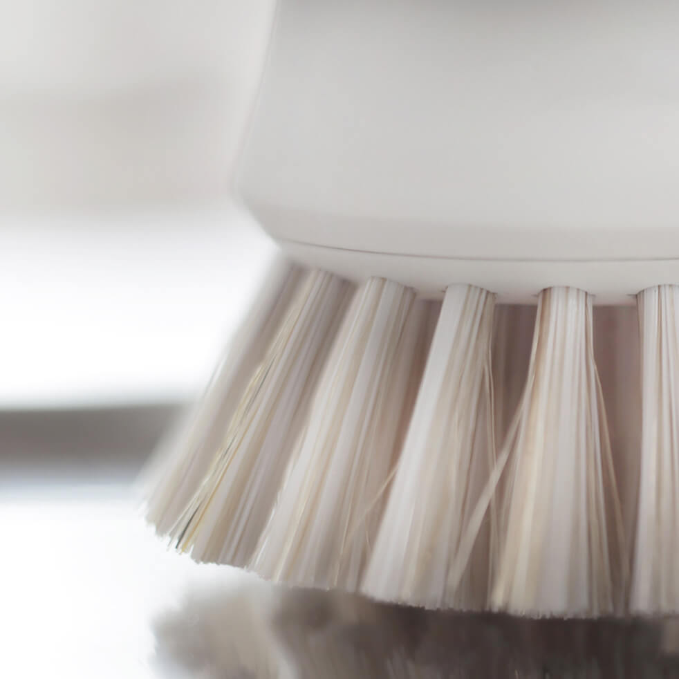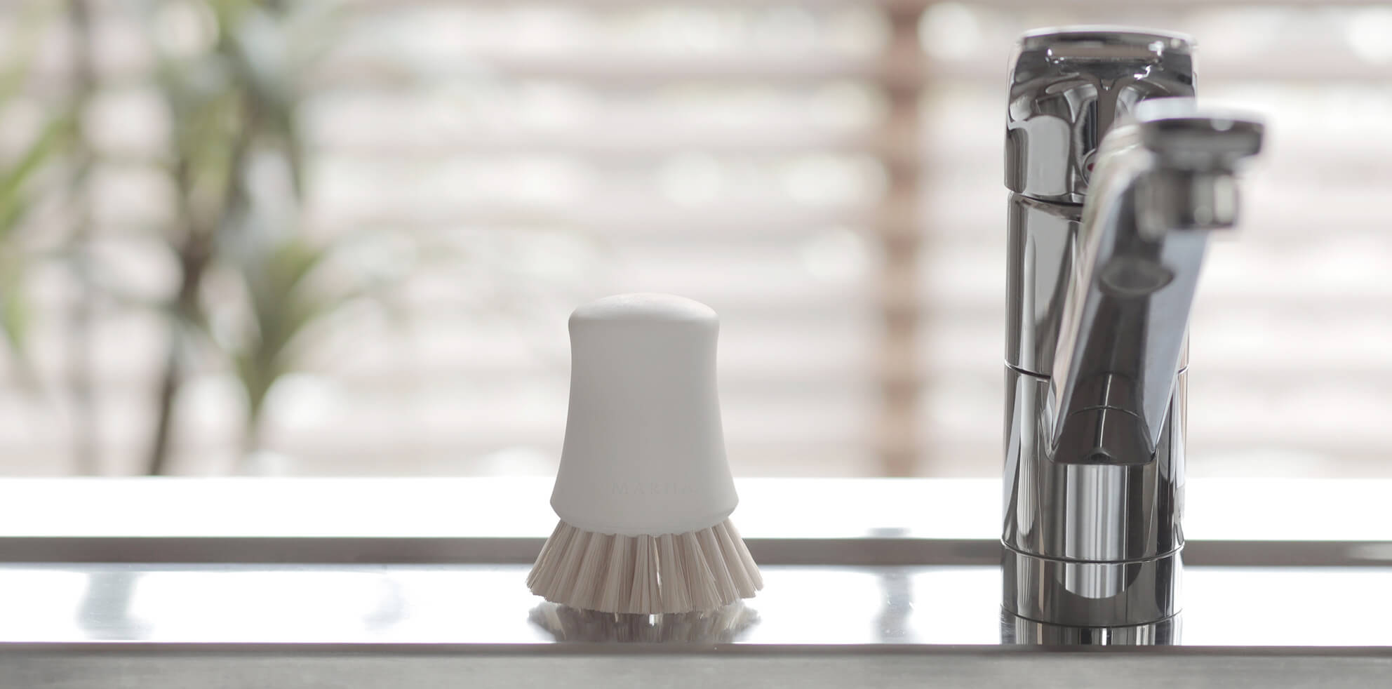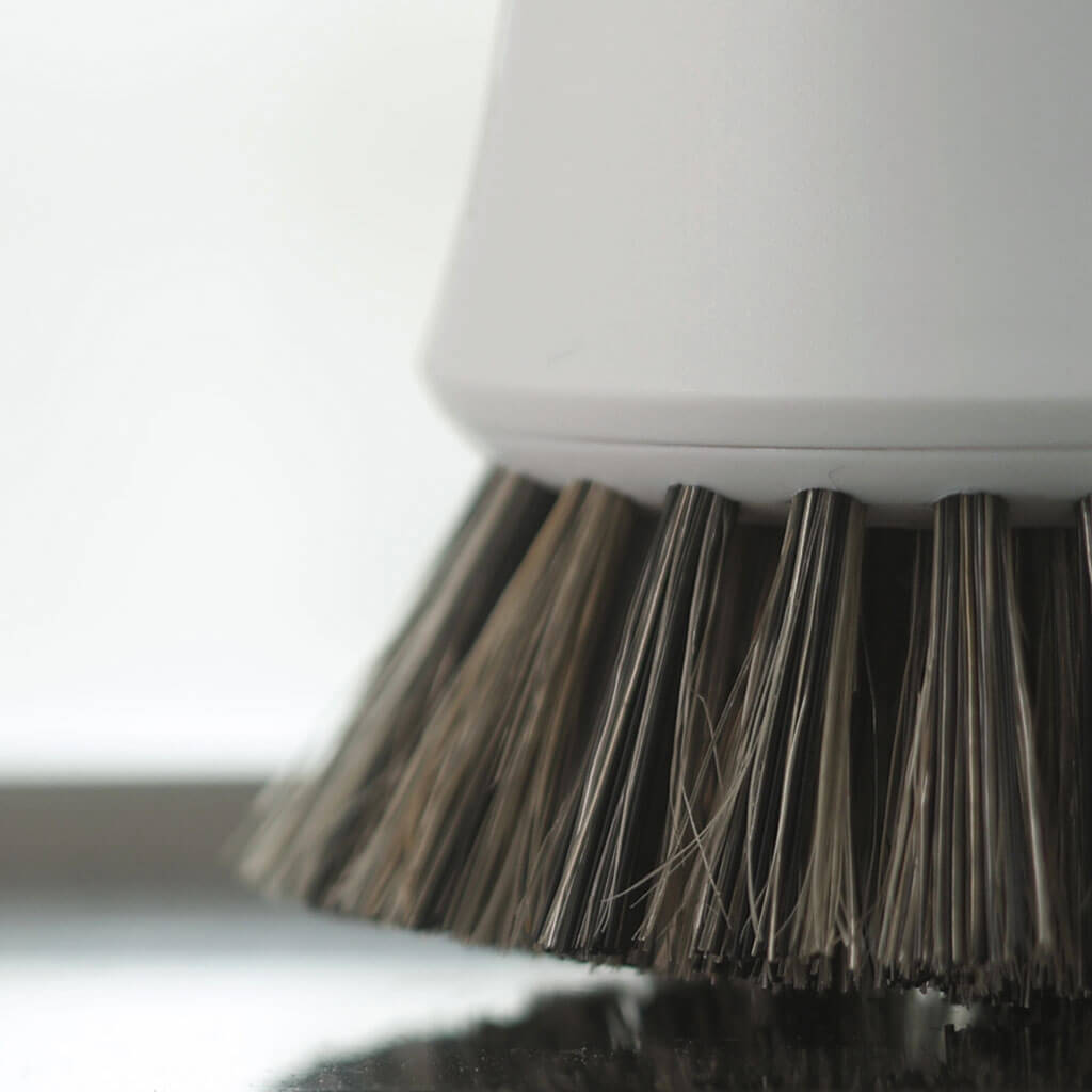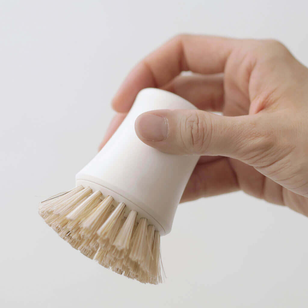 汚れをかき出しながら落とす「かため」タイプ。豚毛と太いナイロン毛の混毛で、しっかりとしたコシのある洗い心地です。おろし金など、スポンジでは難しい洗いものにもおすすめです。