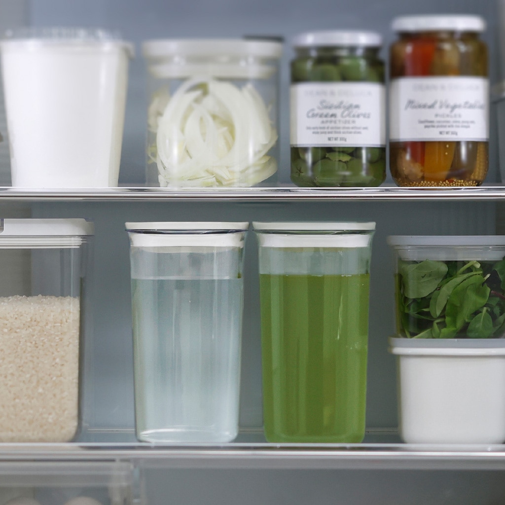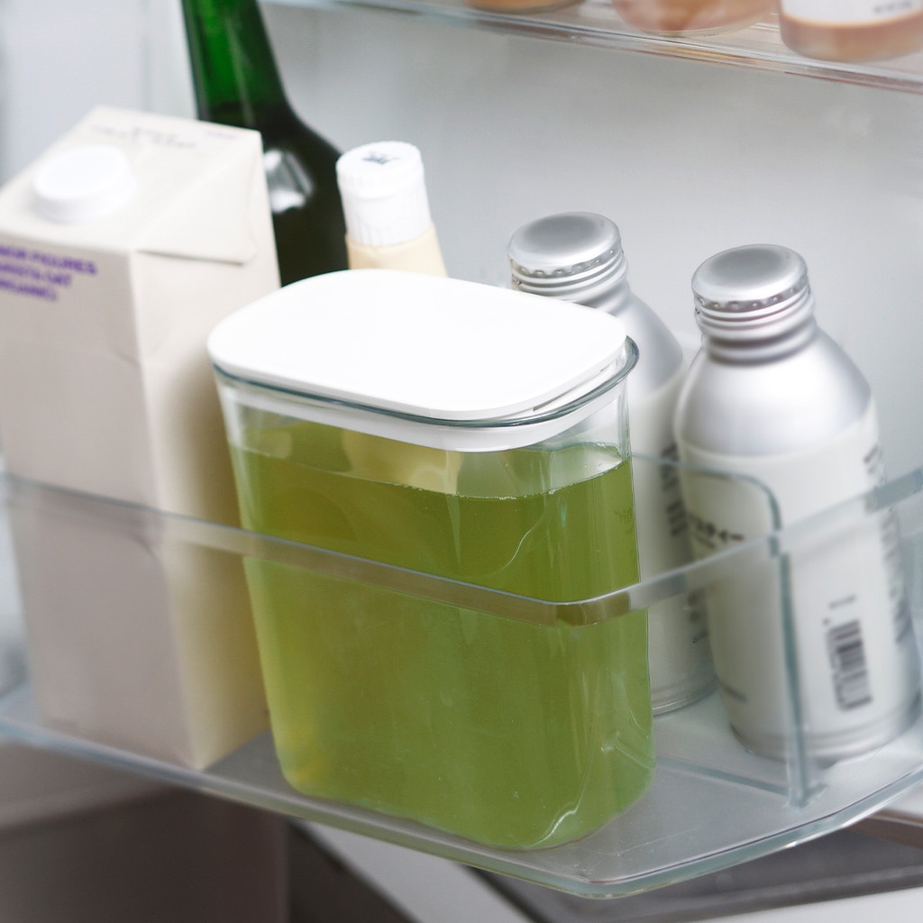 コンパクトサイズで、冷蔵庫の棚の隙間や扉の前ポケットにぴったり入ります。
