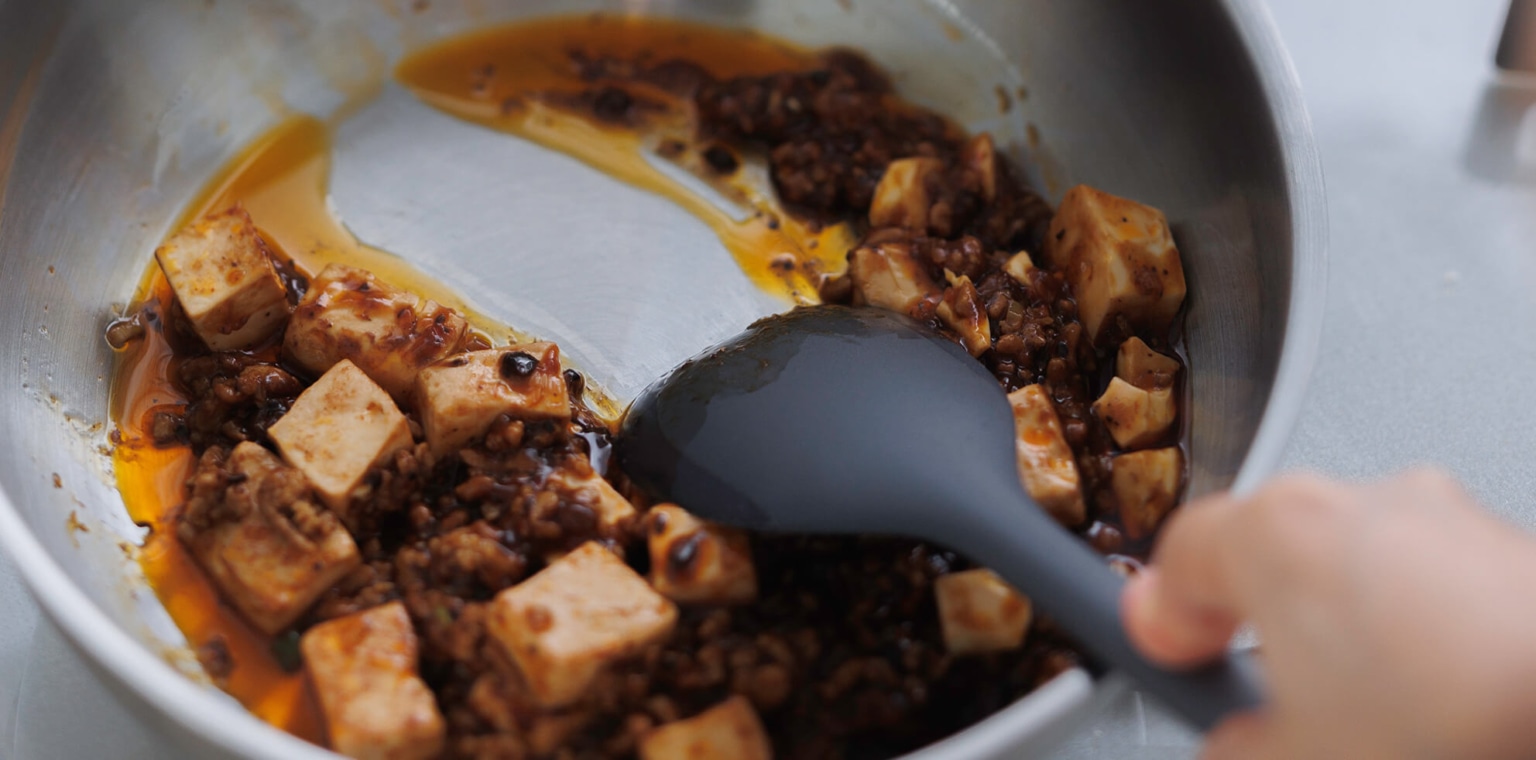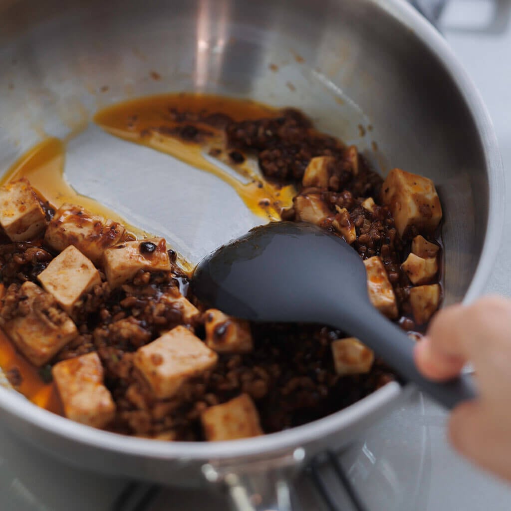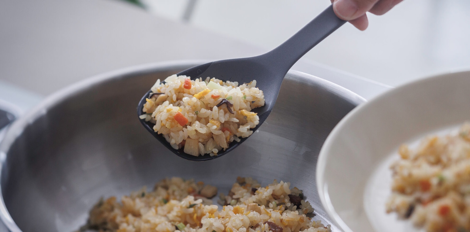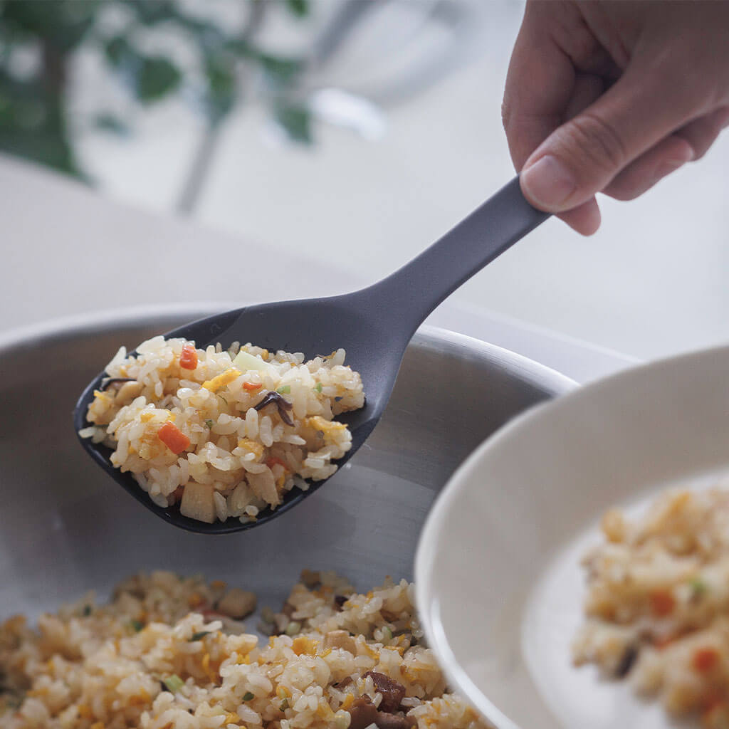 浅めのスプーンで、内側に食材が残りにくい設計。一番深い位置を調整することですくいやすく、軽快に炒める・混ぜる・よそうの3つの作業ができます。