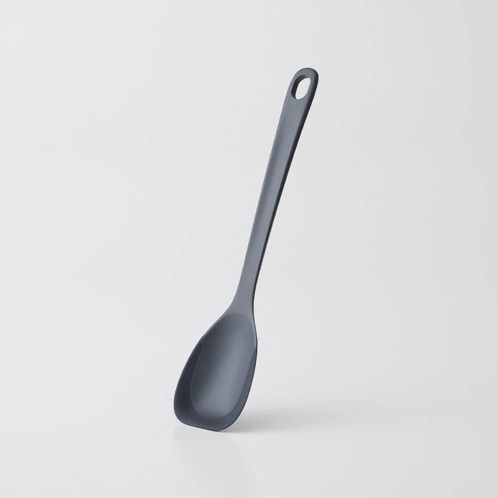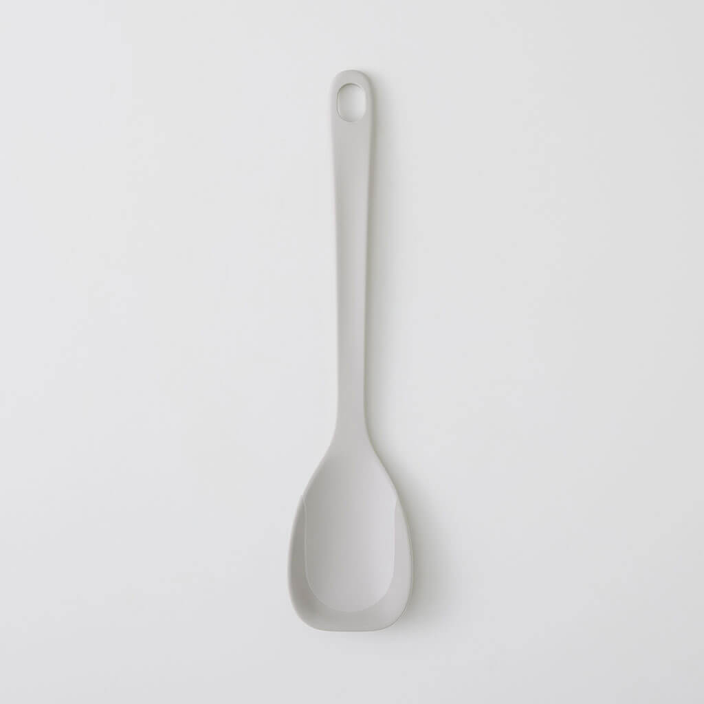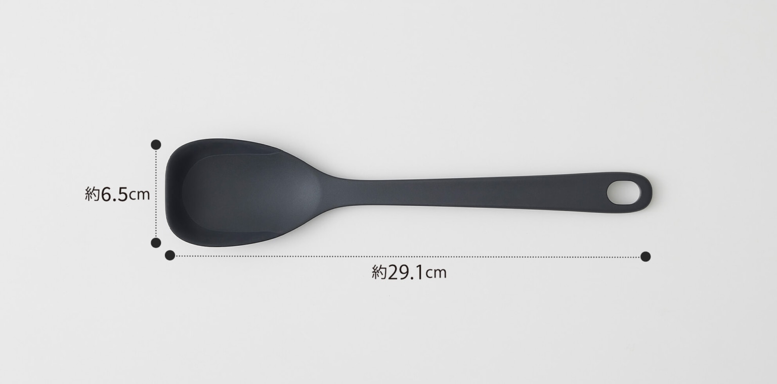 ヘラとスプーンが1つになった小回りのきく万能ツールです。スプーンの先端が鍋肌にフィットして、残さずすくえます。