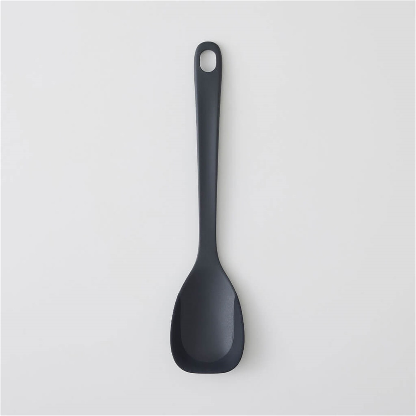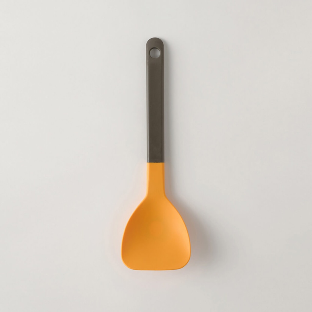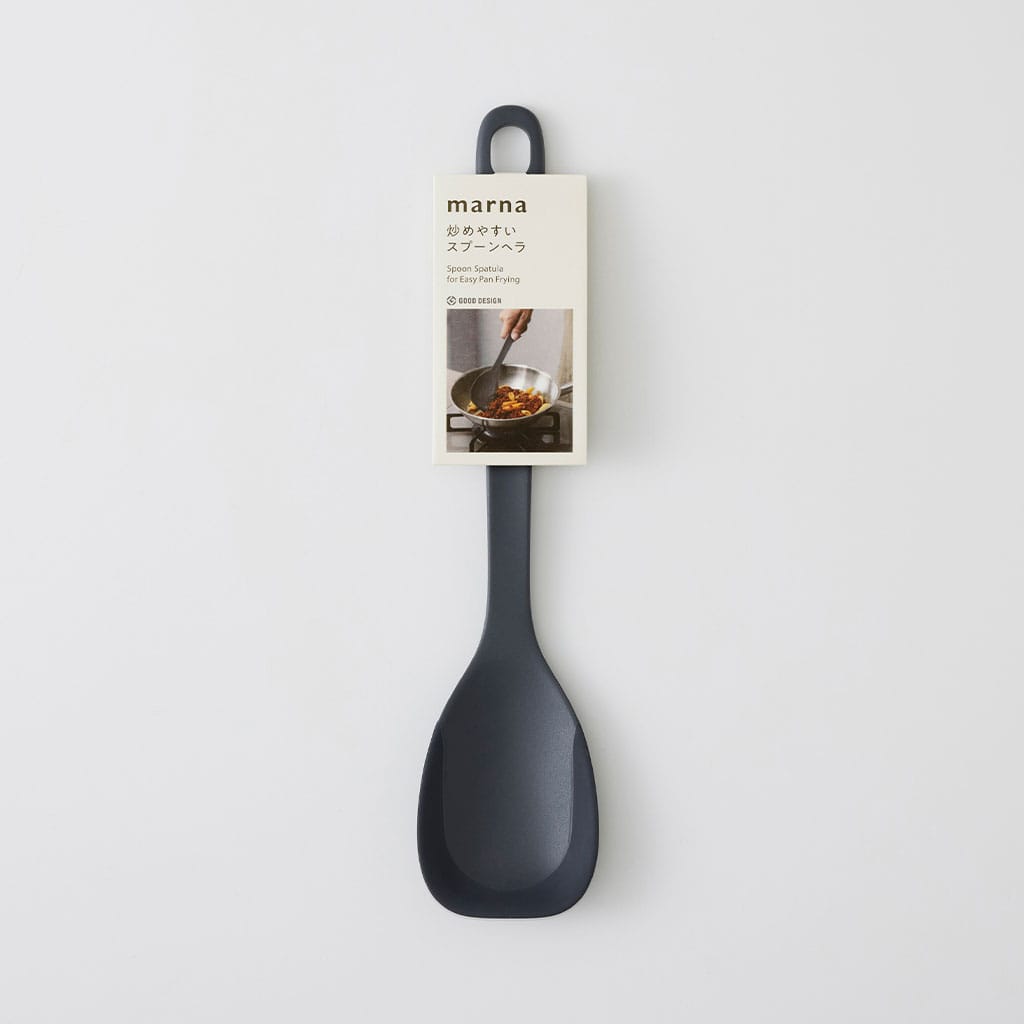 ヘラとスプーンが1つになった小回りのきく万能ツールです。スプーンの先端が鍋肌にフィットして、残さずすくえます。