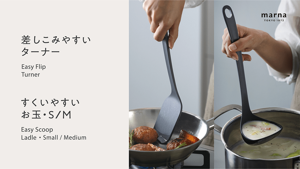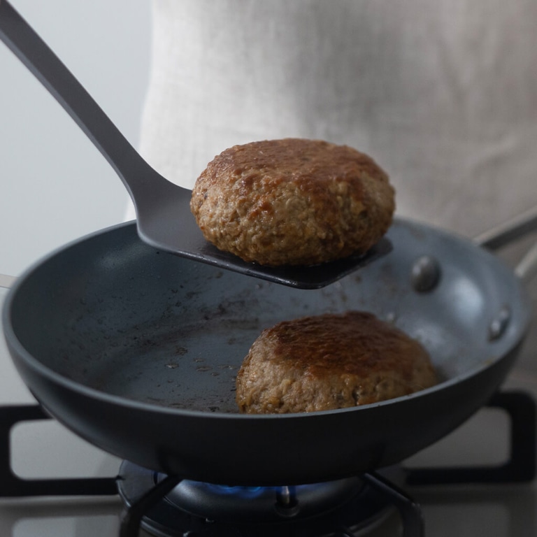 コンパクトな幅で、狙った食材を崩さず持ち上げられます。重たいハンバーグ等を持ち上げる際もしなりません。
