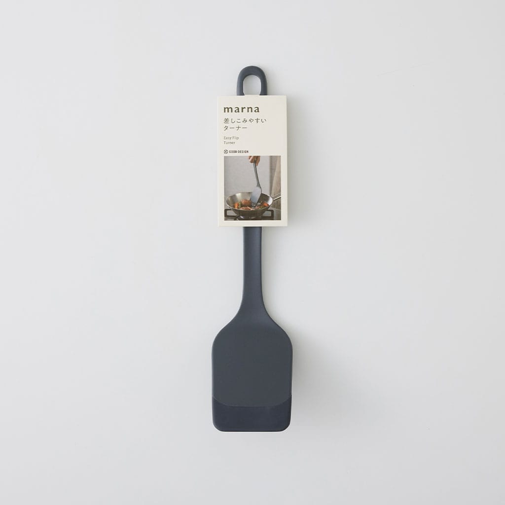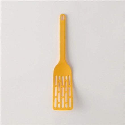 先端がしなって、どんな角度からでもスムーズに差し込めるターナーです。コンパクトな幅でピンポイントに食材を狙って持ち上げられます。