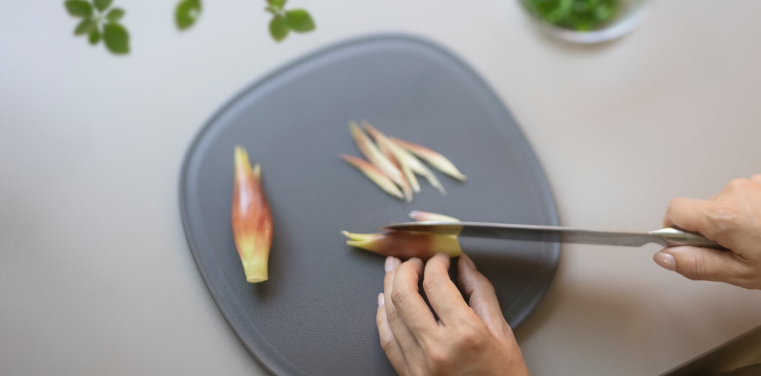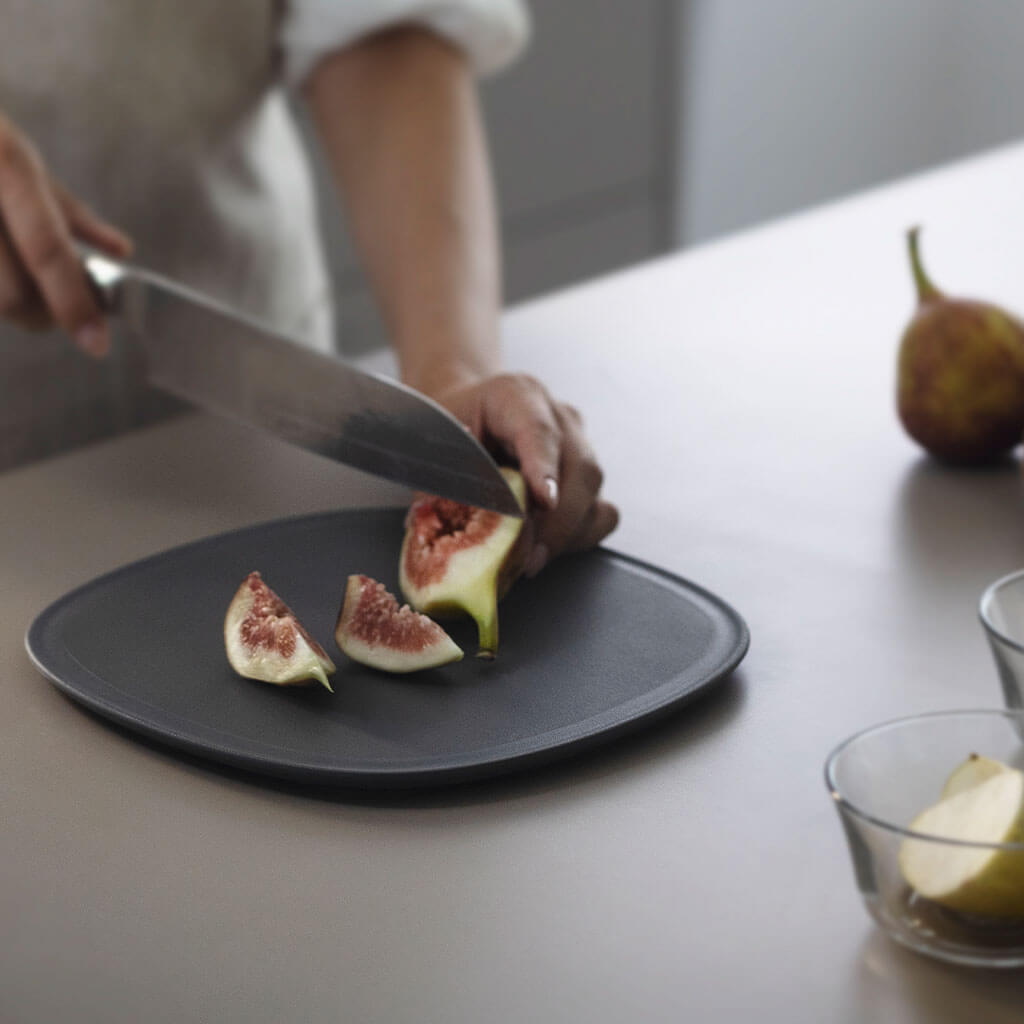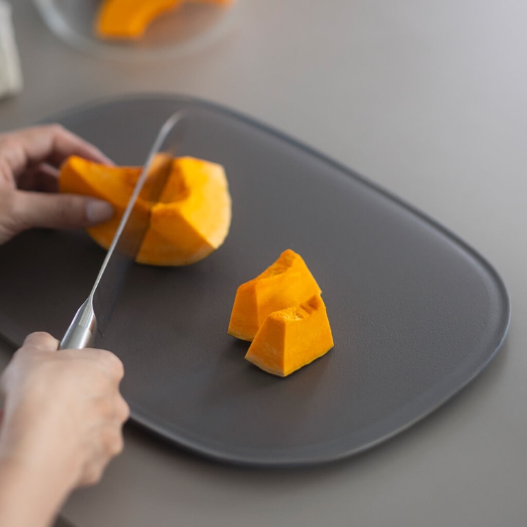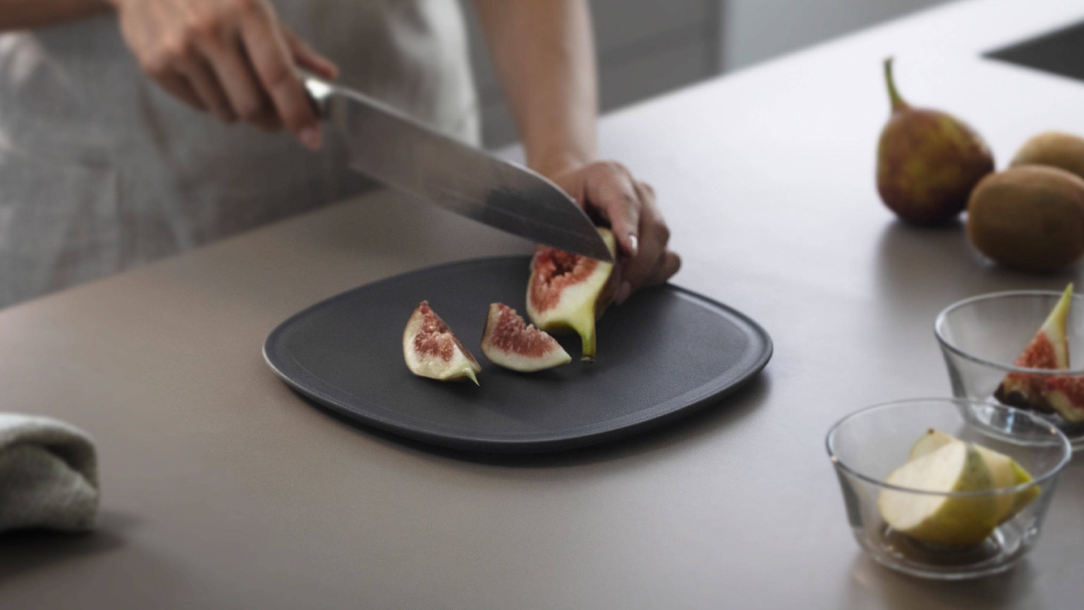 元のかたちに戻ろうとする「復元性」の高いTPU素材で、傷が付きにくく衛生的。また刃当たりがよく、トントンとやさしい感覚で切れます。