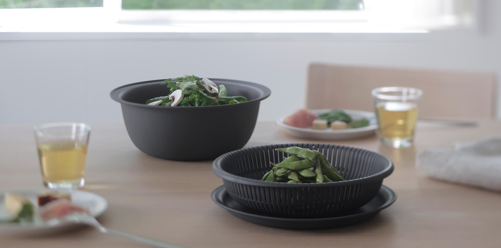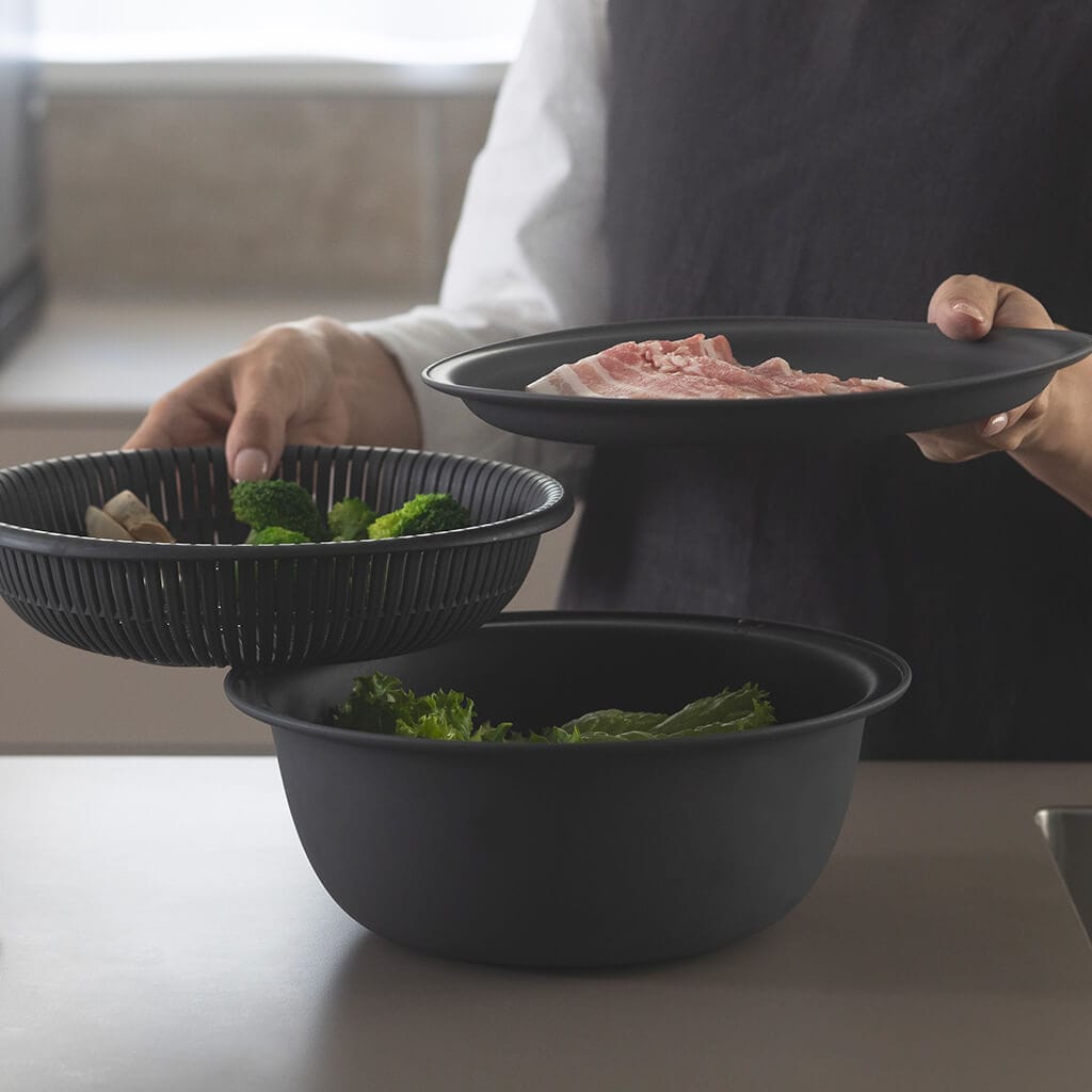 深さの違うザル・ボウルとトレーで キッチン台のスペースも、料理の幅も広がる。