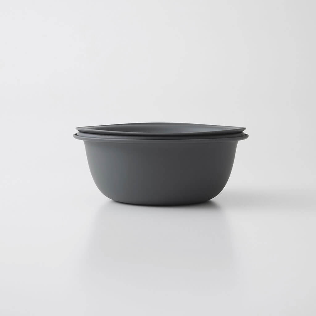 フタとして使えるトレーが付いた、ザルボウルのセットです。ザルとボウルの深さが違うため、重ねて使えてキッチン台のスペースが広がります。また2つの食材をザルとボウルに分けて、一度に電子レンジ調理も可能です。