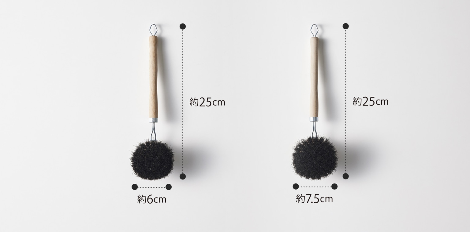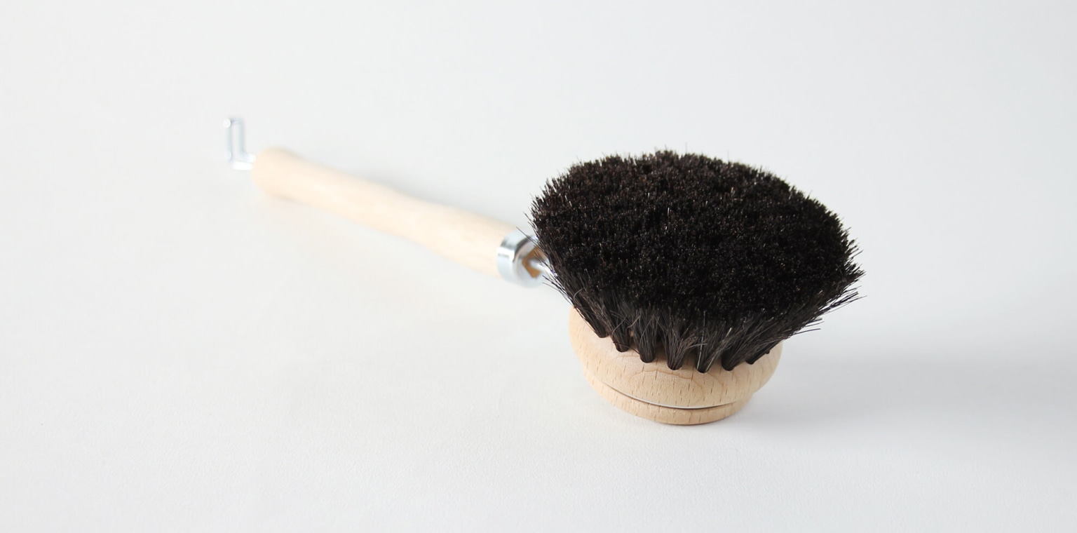 耐熱・耐薬品性に優れた馬毛を100%使用。柄付きで手を汚さずに洗えます。