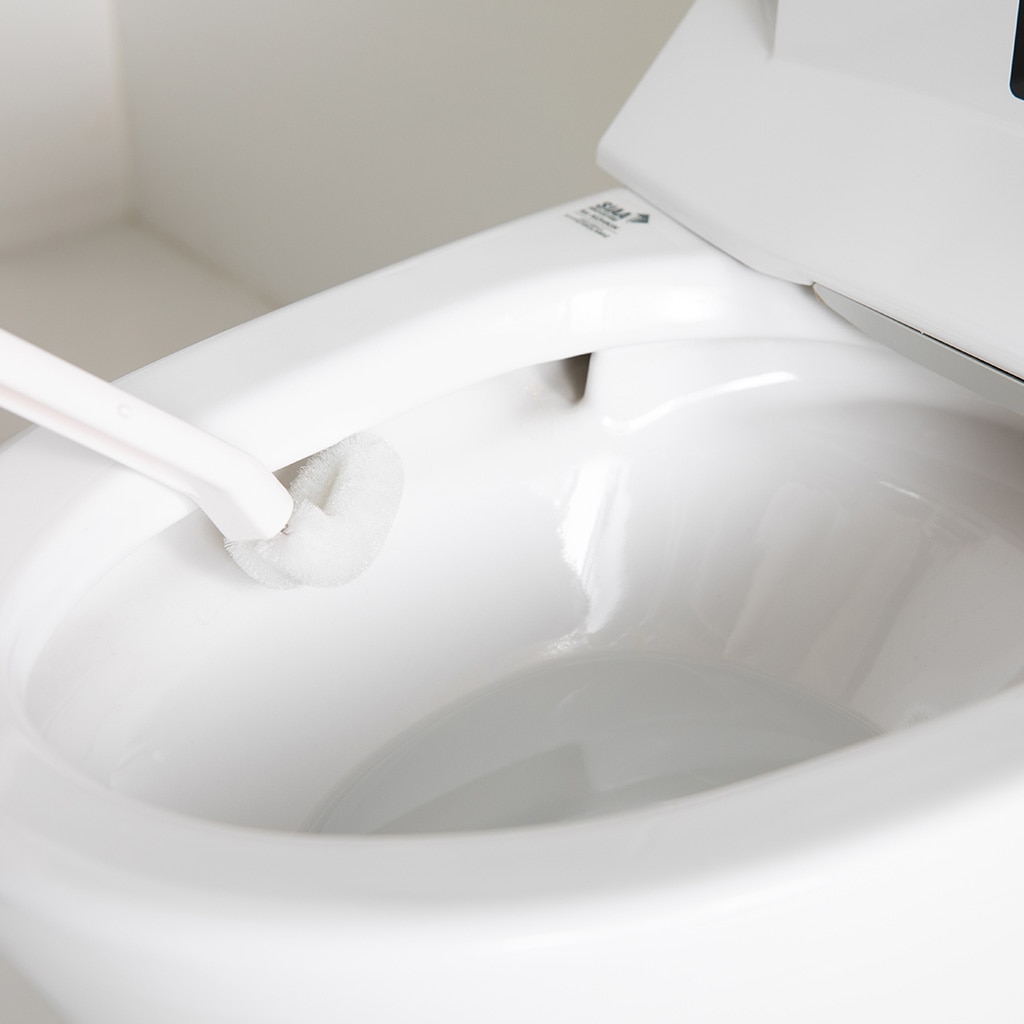 こちらの商品は「フチ裏スッキリトイレブラシ ミニ」の替えブラシとしてご利用いただけます。洗剤をしっかりキープする植毛と水はねしにくい極細ウェーブ毛で届きにくいフチ裏に入り込みます。