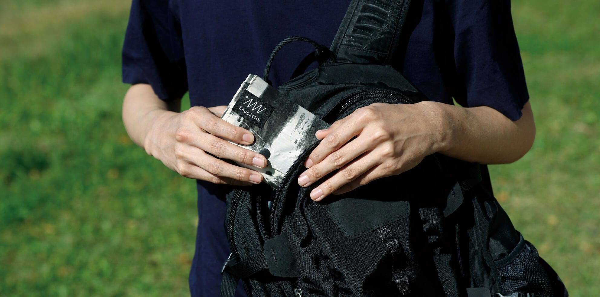 撥水生地を使用しているので、雨の日や川・海など水のアクティビティにも安心して使えます。