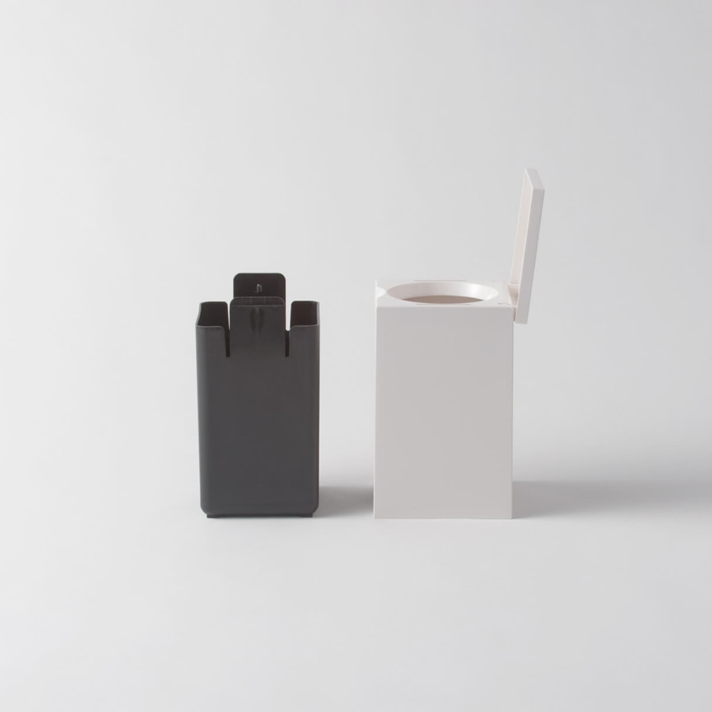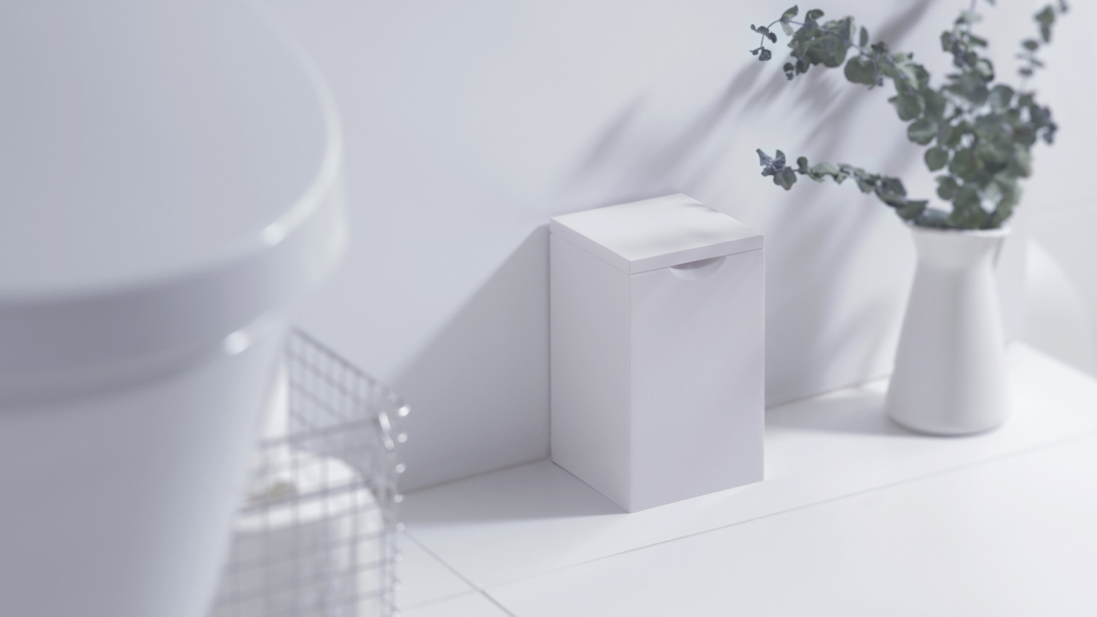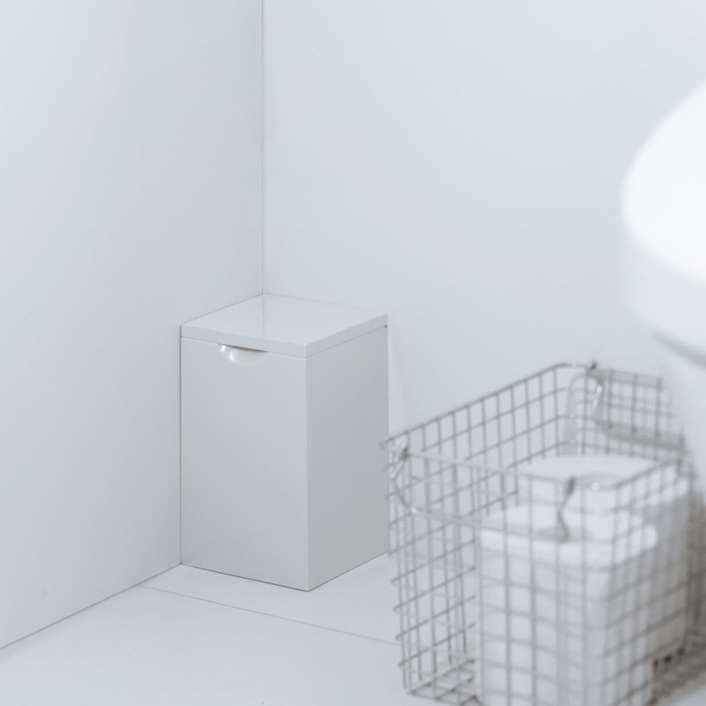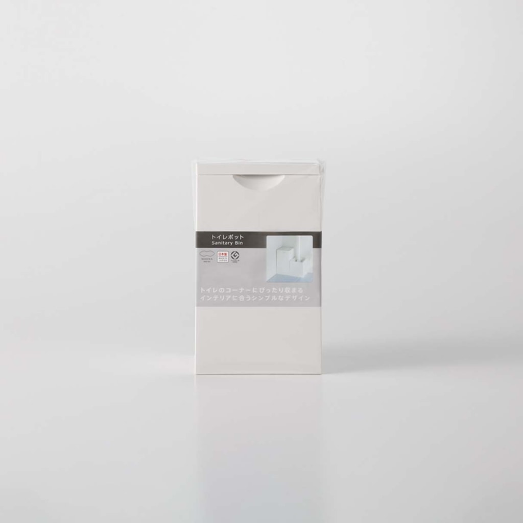 シンプルなスクエア型で、トイレのコーナーにぴったりと収まります。内ケースがワンタッチで外せて、お手入れが簡単です。