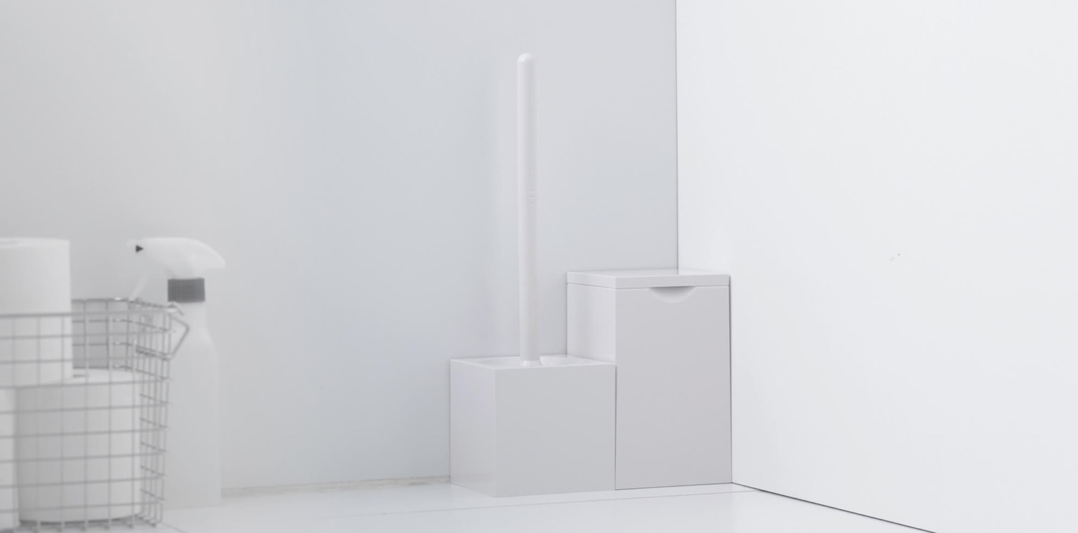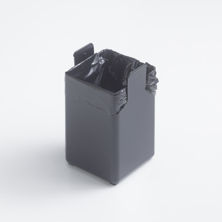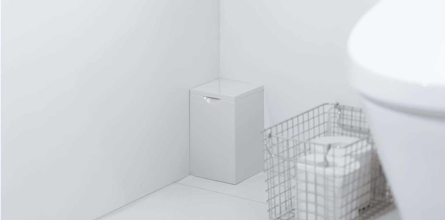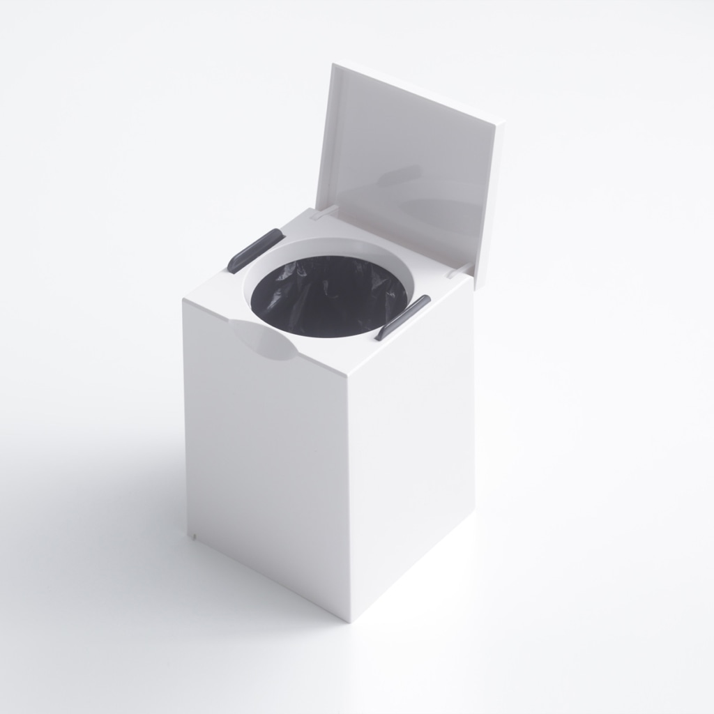 シンプルなスクエア型で、トイレのコーナーにぴったりと収まります。内ケースがワンタッチで外せて、お手入れが簡単です。