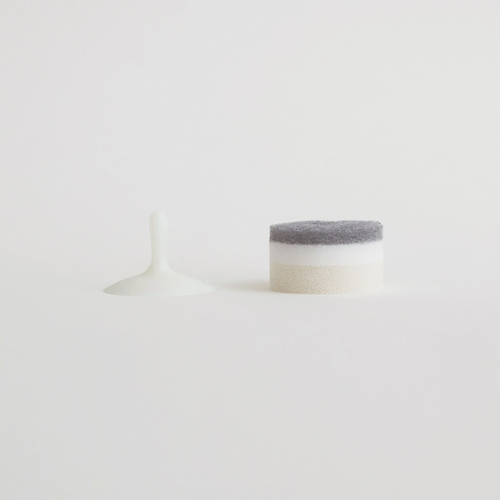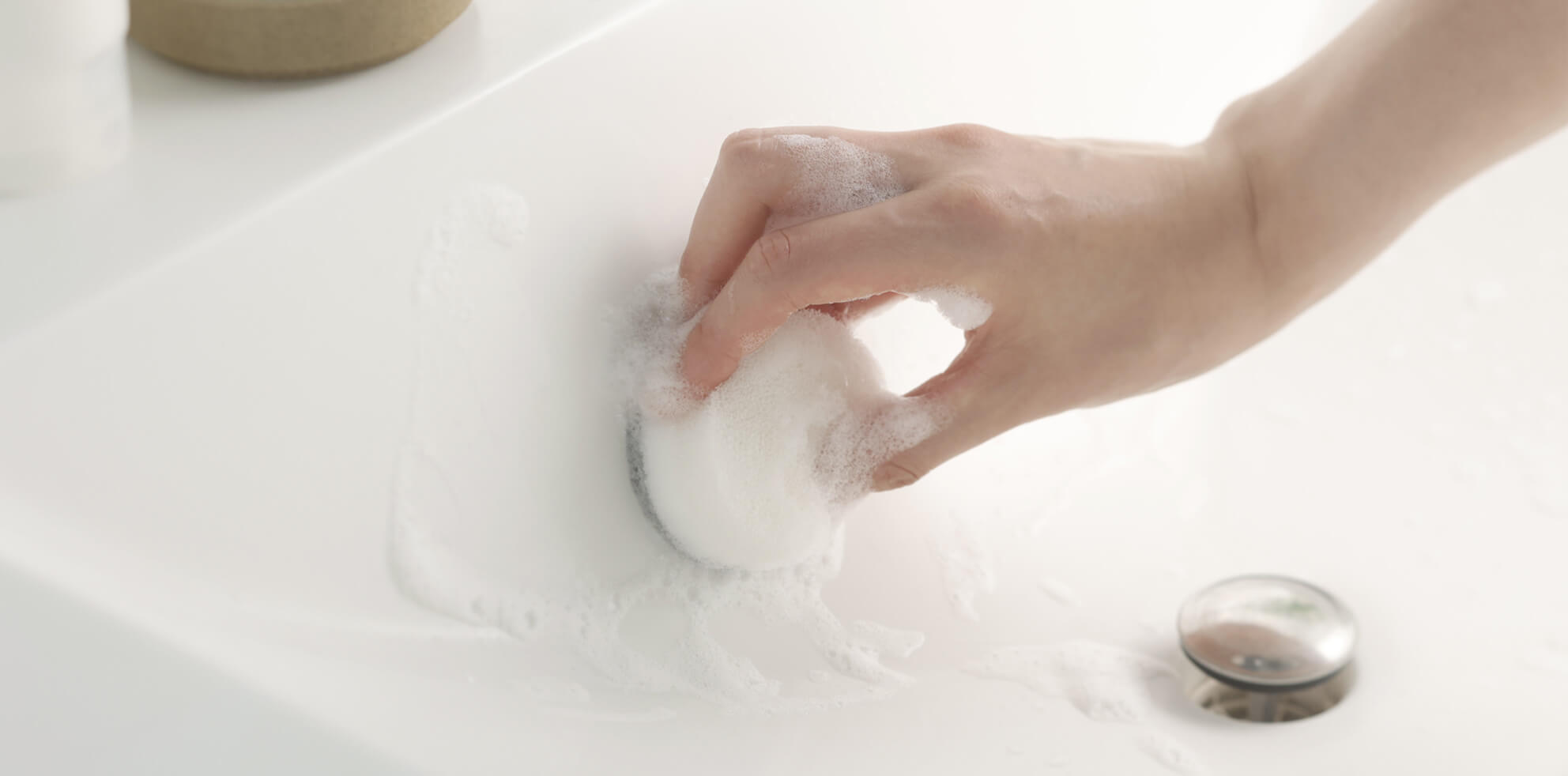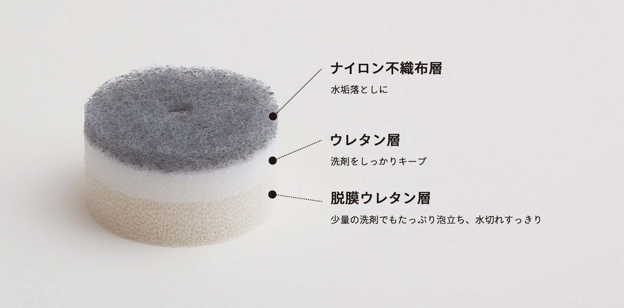 洗面台まわりの好きな位置に吸盤で取り付けるスポンジ。泡立ち・耐久性に優れ、通気性がよくスポンジを清潔に保ちます。