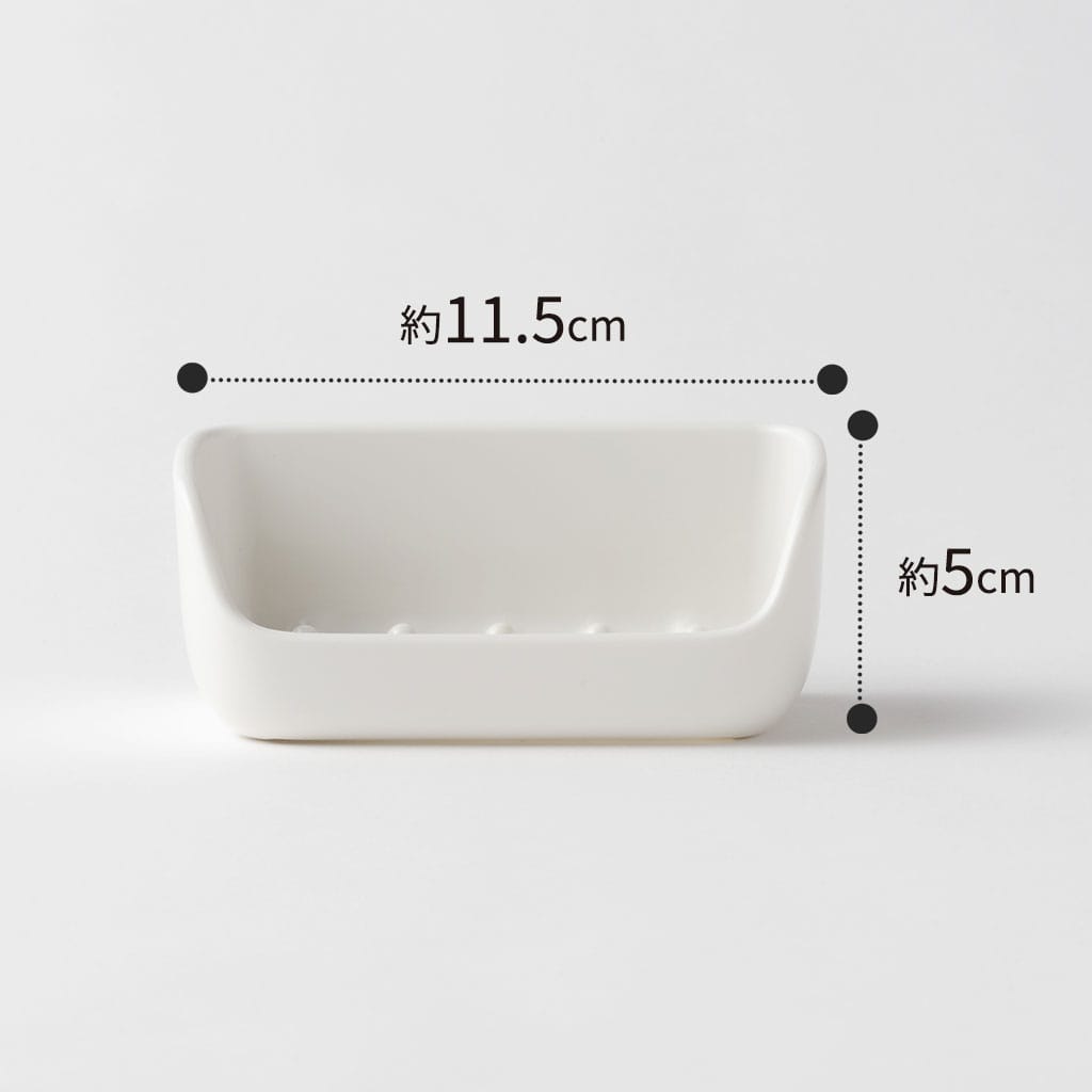 内側の底が傾斜していて、自然と水が流れて切れる構造になっています。凹凸で支えるため、石けんが乾きやすく長持ちします。