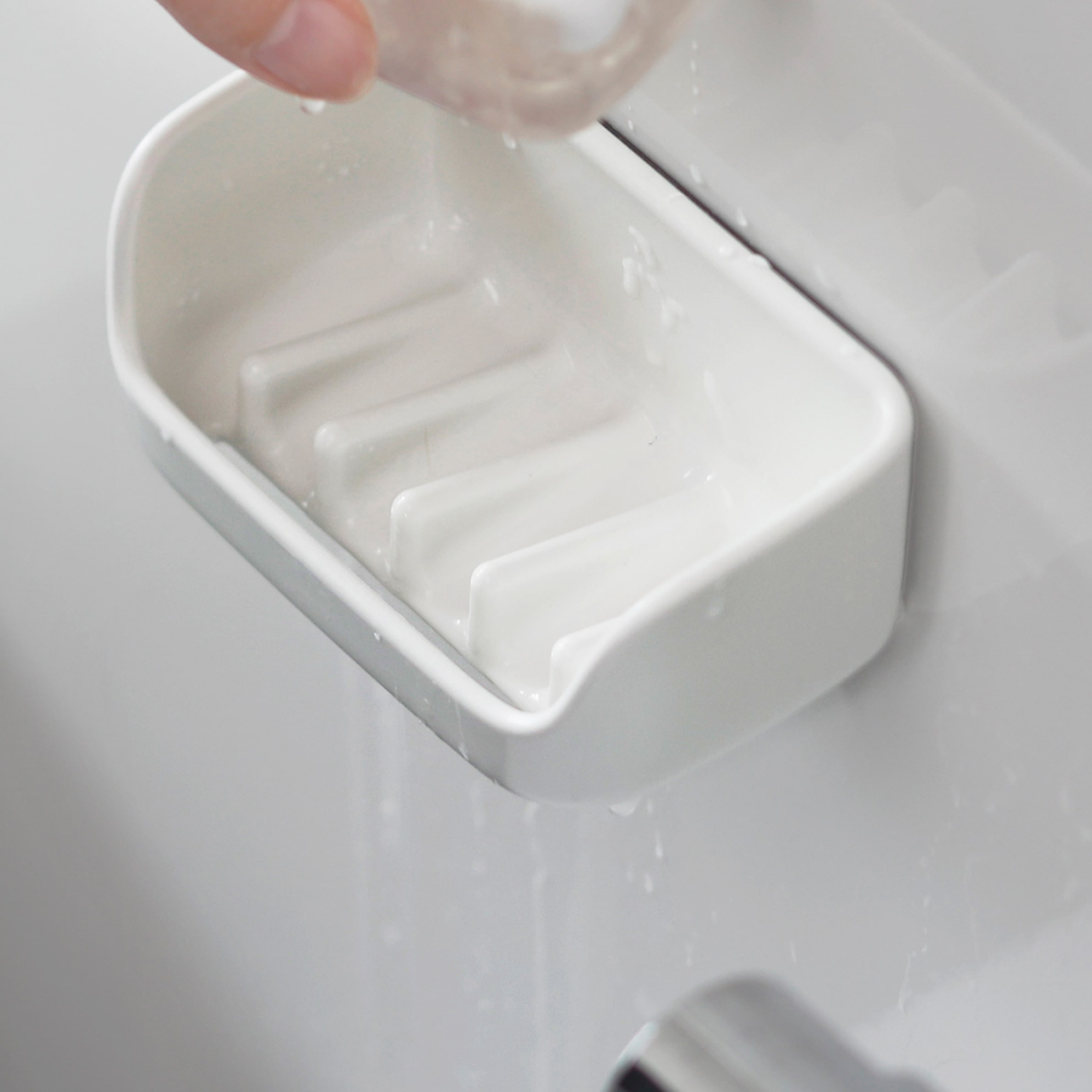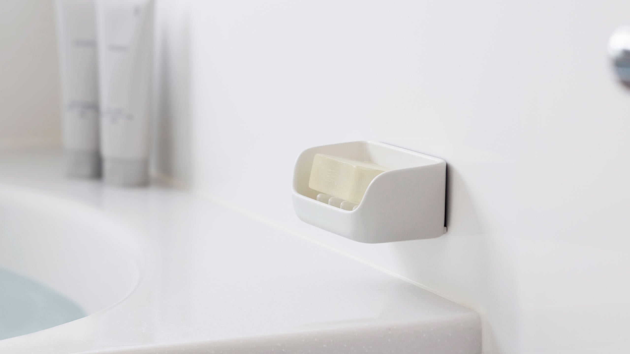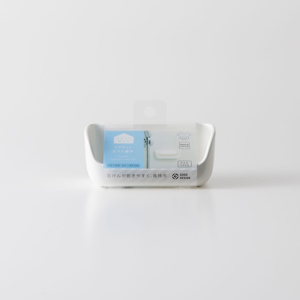 マグネットで浴室の壁面に取り付けられる石けん置きです。自然と水が切れる構造で石けんが乾きやすく、長持ちします。滑り止め付きで、水気の多い浴室でもしっかり止まります。サビないラバーマグネットを使用しています。