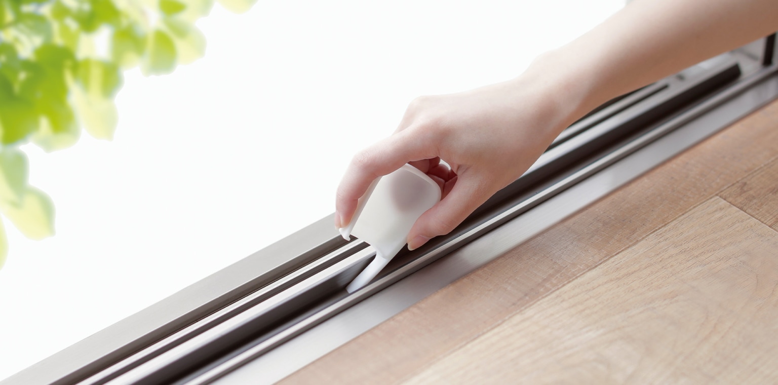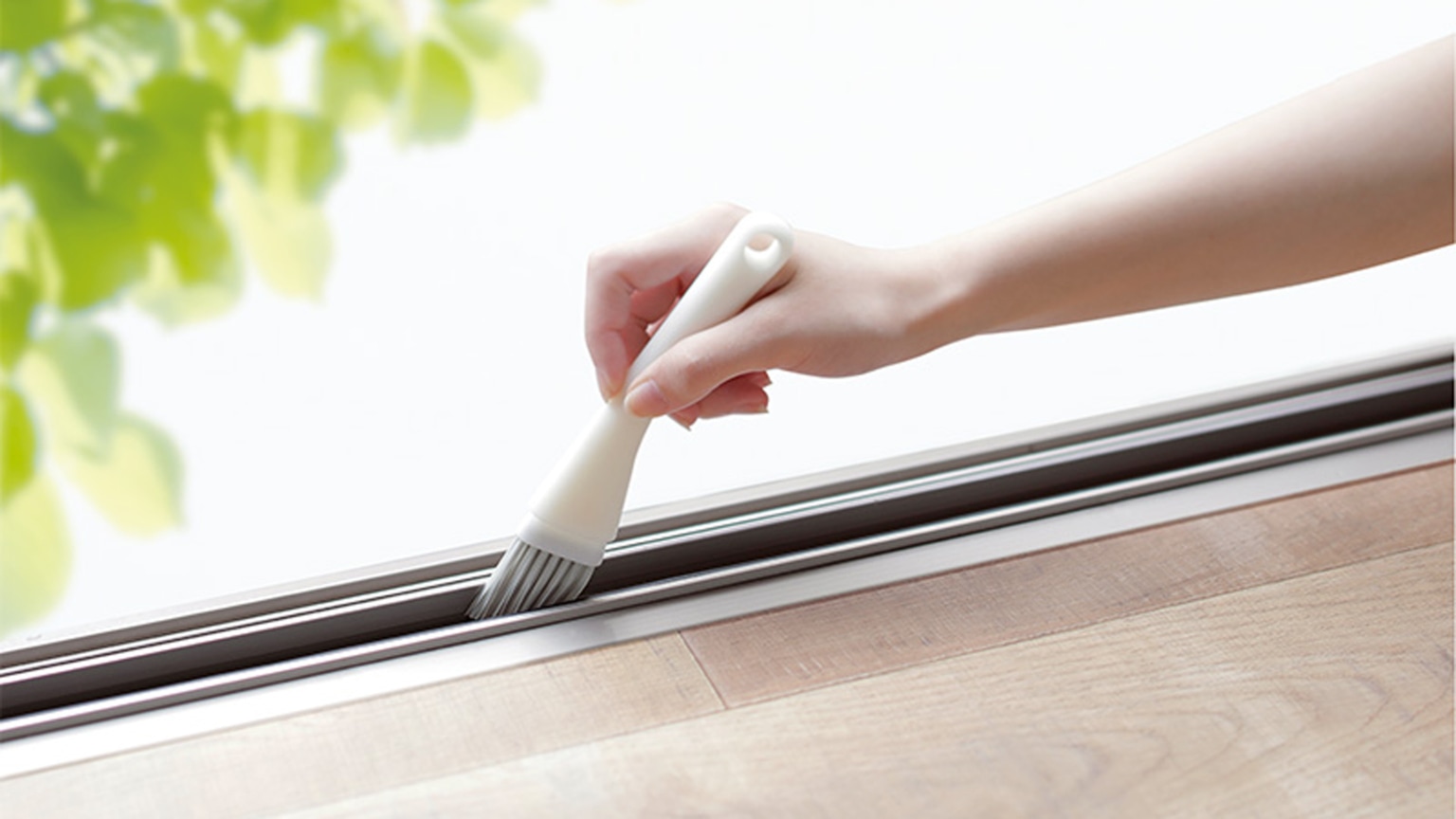 サッシのレールをサッと掃けるペン型のサッシブラシです。ブラシとカバーのヘラを使ってサッシのすみずみまで掃除できます。汚れたブラシをきれいに収納できるカバー付き。