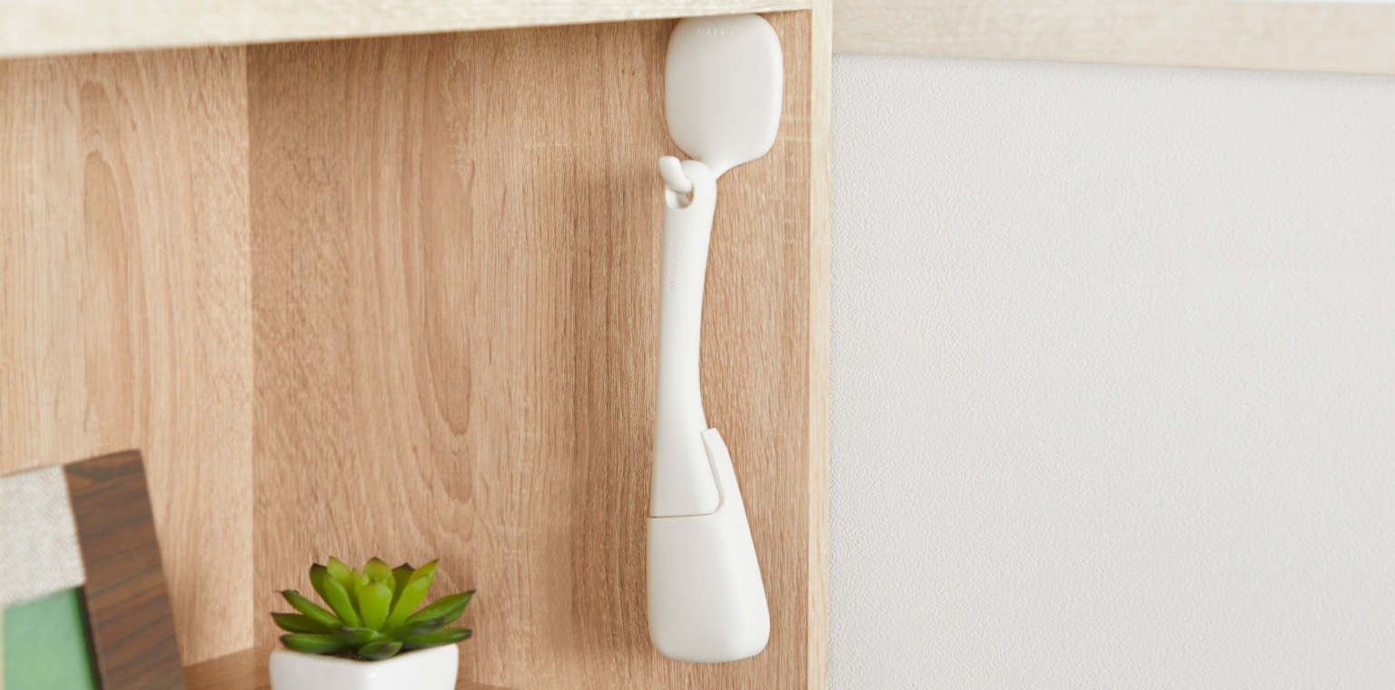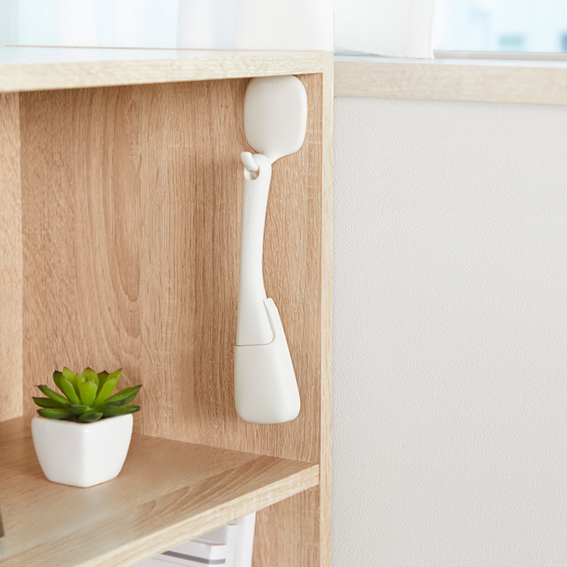 フック穴が開いているので、壁かけなどの収納が可能で、邪魔になりません。窓の近くなどに収納でき、汚れに気づいた時にサッと掃除できます。