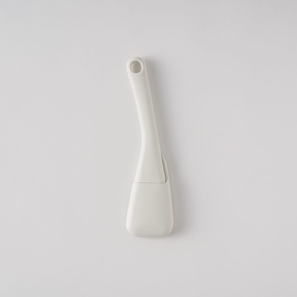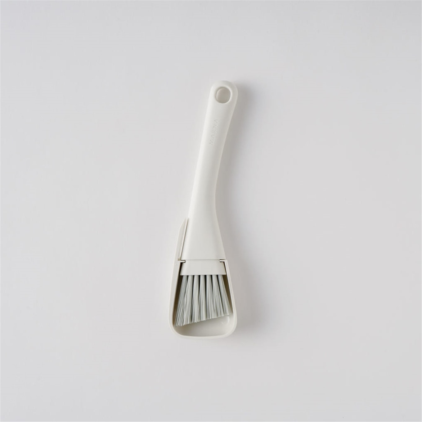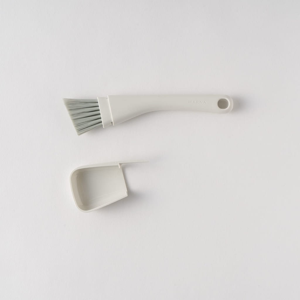 角度が付いたブラシは密な植毛で、汚れをしっかりかきだします。カバーはヘラになっており、固まったスミの汚れをかきとります。使用後はカバーをはめることで、きれいに収納できます。