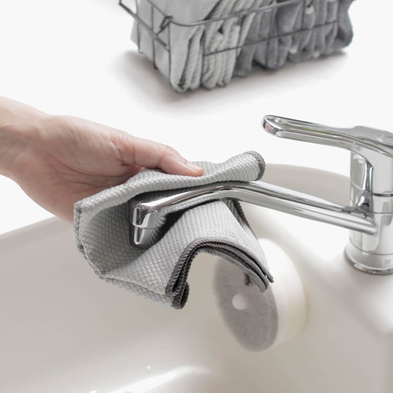 ガラスや鏡の水アカ・手アカ、蛇口の磨き上げにぴったりなクロスです。マイクロファイバー繊維が汚れをとってピカピカに。